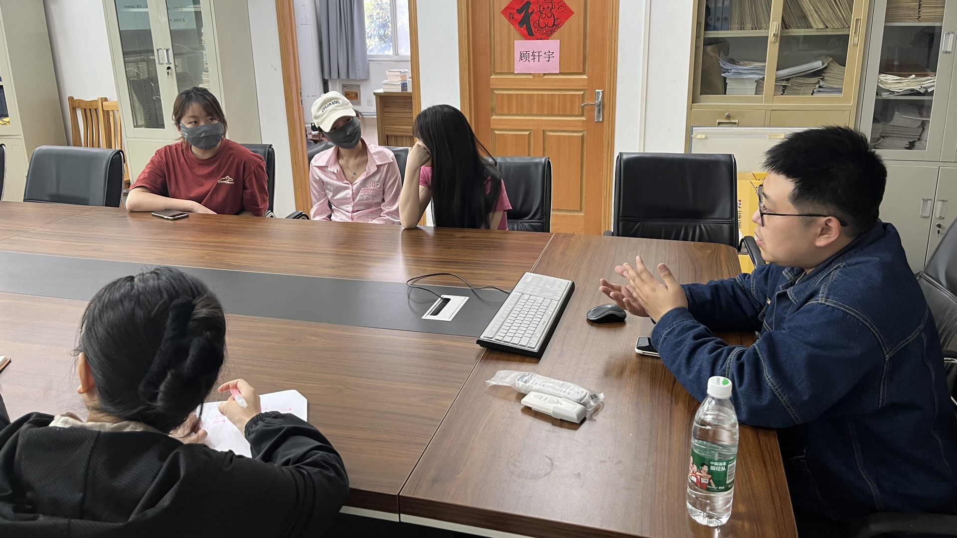 首先,顾轩宇老师结合当前大二学生即将开展顶岗实习,精心准备了“大学生就业指导 常见面试类型详细解读”为主题的公开月讲评试讲。他分别从课程导入、自我情况分析、面试准备、面试行为、模拟求职现场等环节进行宣讲。之后,查理及于文倩对顾老师试讲过程中的语言表达、肢体动作、课程进度、学生理解、接受程度等方面发表了建议。
