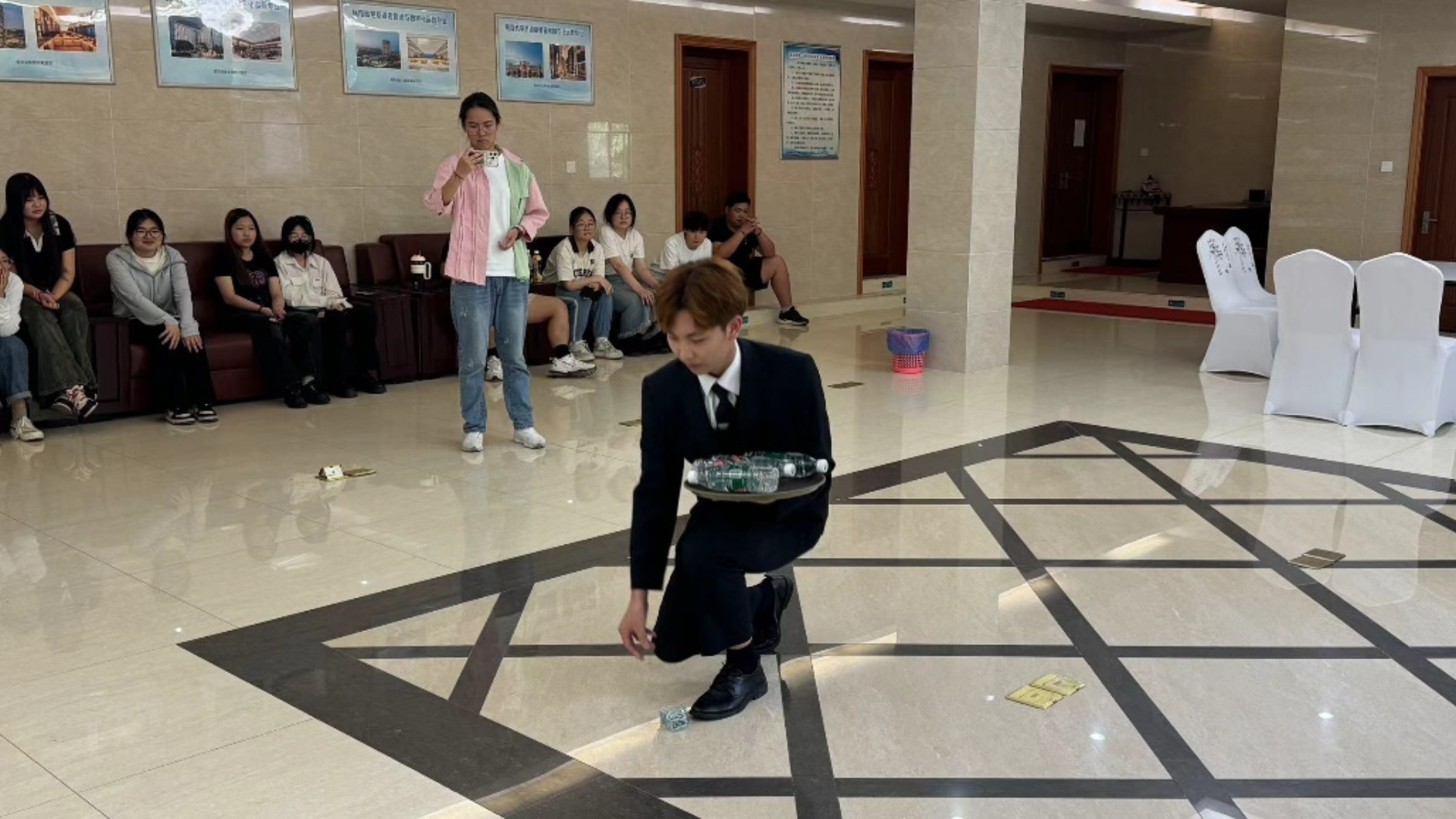 托盘赛不仅是对同学们专业技能的一次考验,更是对团队协作和友谊精神的一次深刻体现。比赛中,选手们身着整洁的制服,手持托盘,在规定的路线上迅速而稳健地前进。他们不仅要保持托盘的平衡,还需展现出优雅的服务态度,充分体现了同学们的团队向心力及的专业能力。