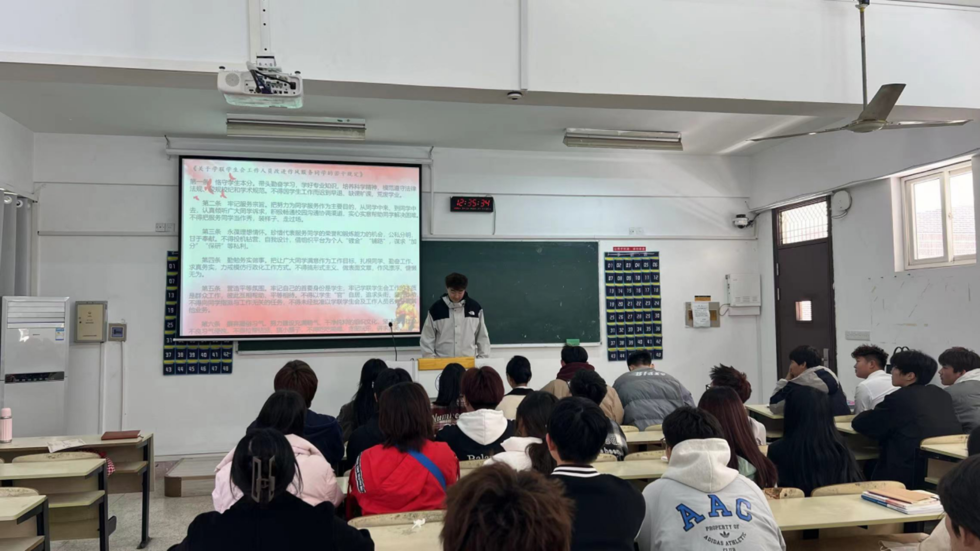 最后,系党支部书记、副主任查理强调,学生干部”首先是“学生”同时又“干部”,是系优秀学生的代表,是思想政治教育的重要成员,是学生管理工作的具体组织者,是老师的得力助手,,是良好学风引领者,是天博体育 文化建设的重要组织、推动、实施者,是学风建设的建设者、管理者。他向各位学生干部提三点希望和要求:一是要不断加强政治理论学习,做政治过硬的学生干部;二是要拒绝“躺平”之态,做勇于担当的学生干部。三是要起到模范带头作用,做乐于表率的学生干部。
