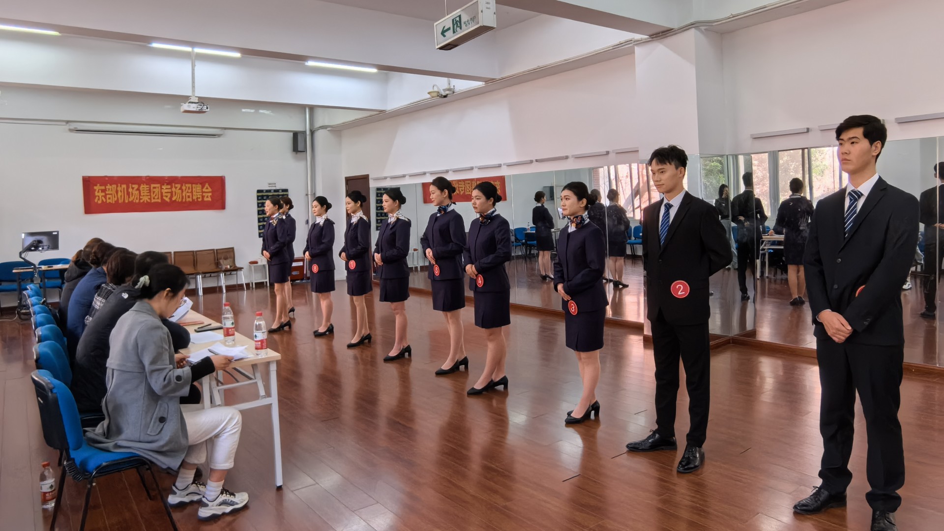 民用航空系对此次专场招聘会高度重视,系主任吴慧亲自挂帅,党支部书记查理、专业老师朱枫、王晶、施文静全程参与指导。经过周密安排,充分宣传选拔,我系选拔出具备良好素质和潜力的55余名空中乘务专业的学生参加面试。面试现场,他们着装整齐、仪表得体,专业素养高,得到了用人单位的充分肯定。