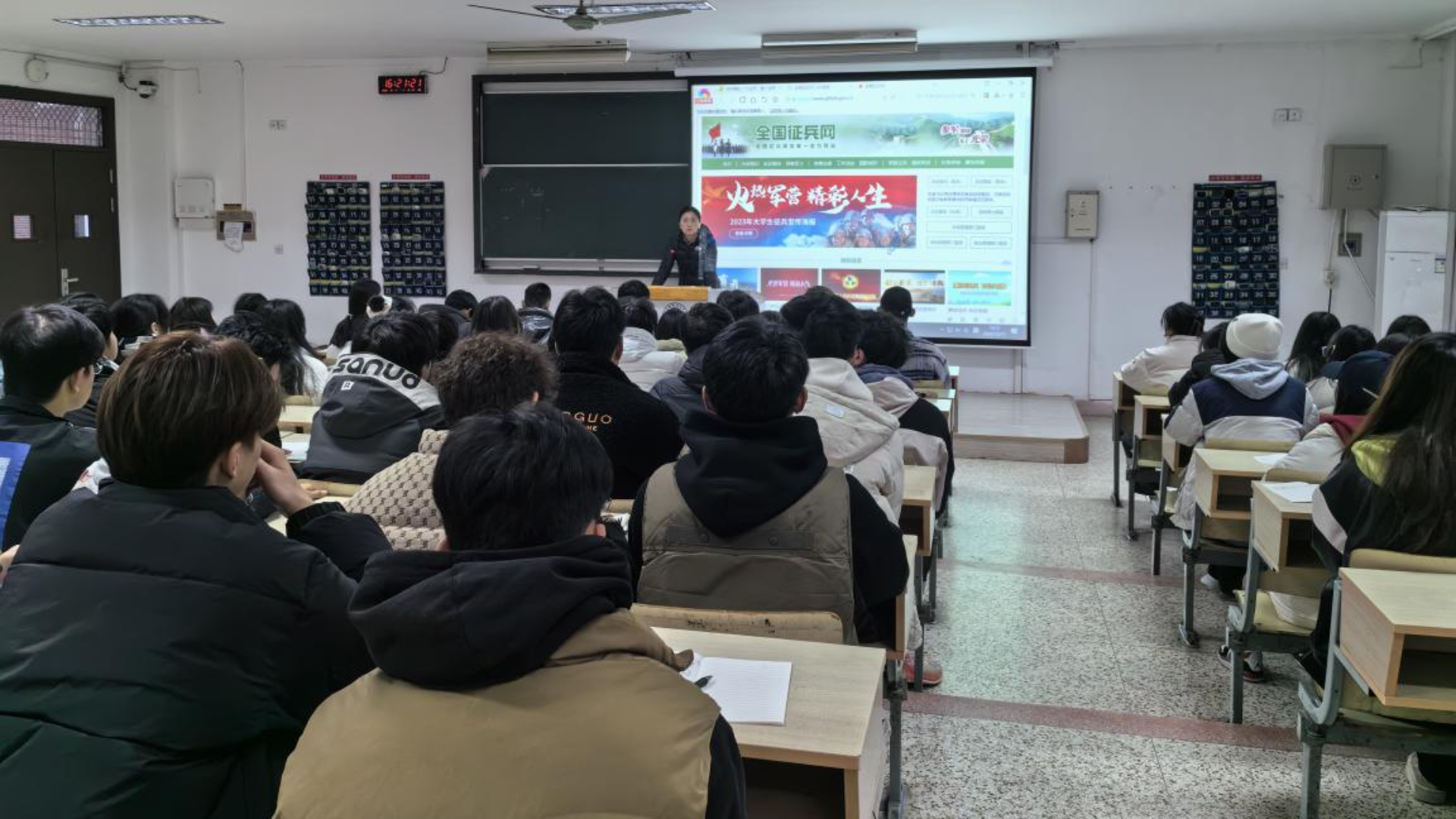 为进一步落实国家相关征兵工作要求,帮助大学生全面了解征兵政策,12月11日下午,民用航空系在1203、2206举行2024年征兵入伍宣讲会。就业工作负责老师,退伍学生代表及系全体学生参加本次宣讲会。