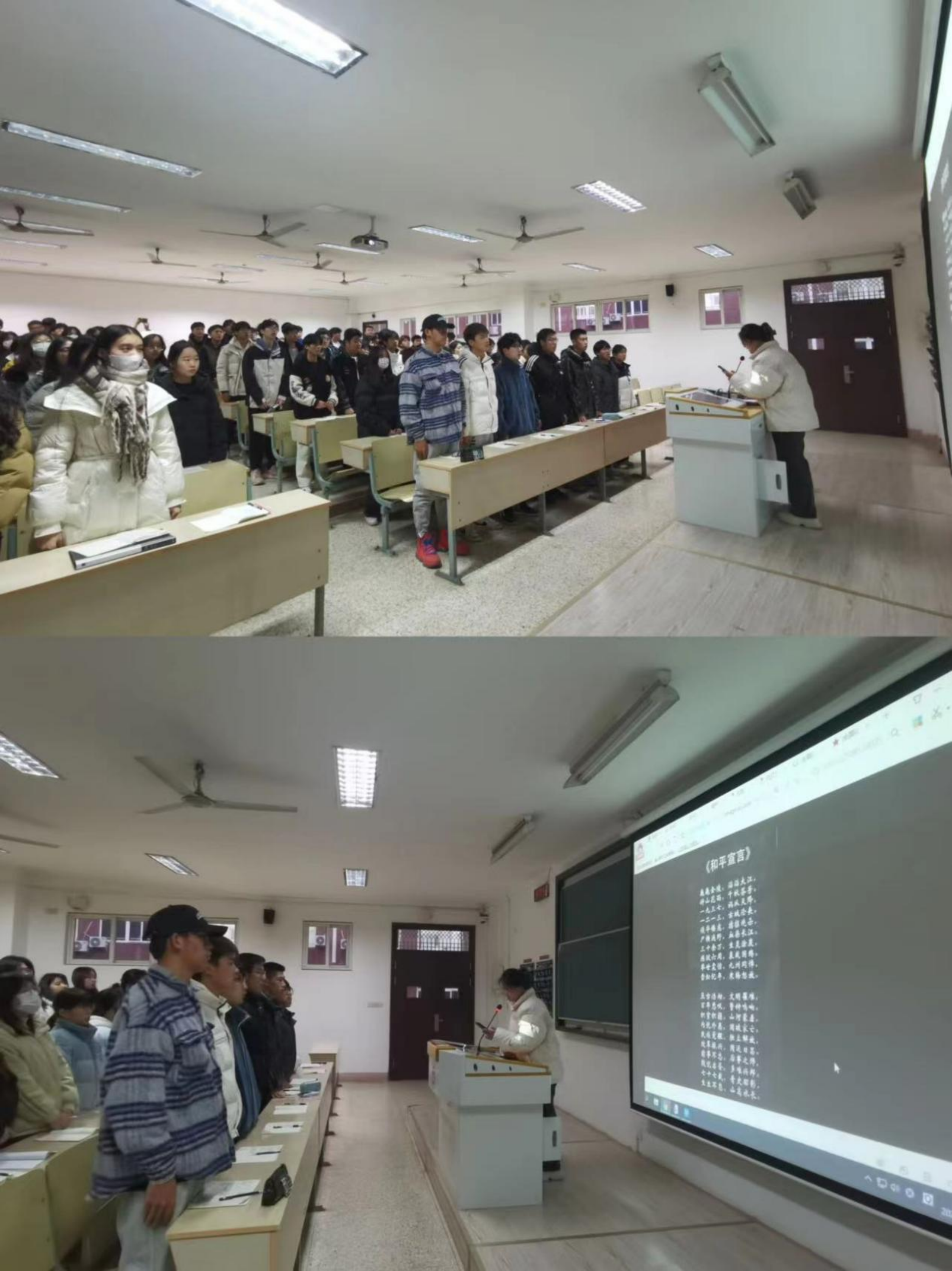 观影结束后,全体同学齐声诵读《和平宣言》,铿锵起伏的宣言使学生们深刻体会侵略者的冷血和残暴,更深思和平来之不易。