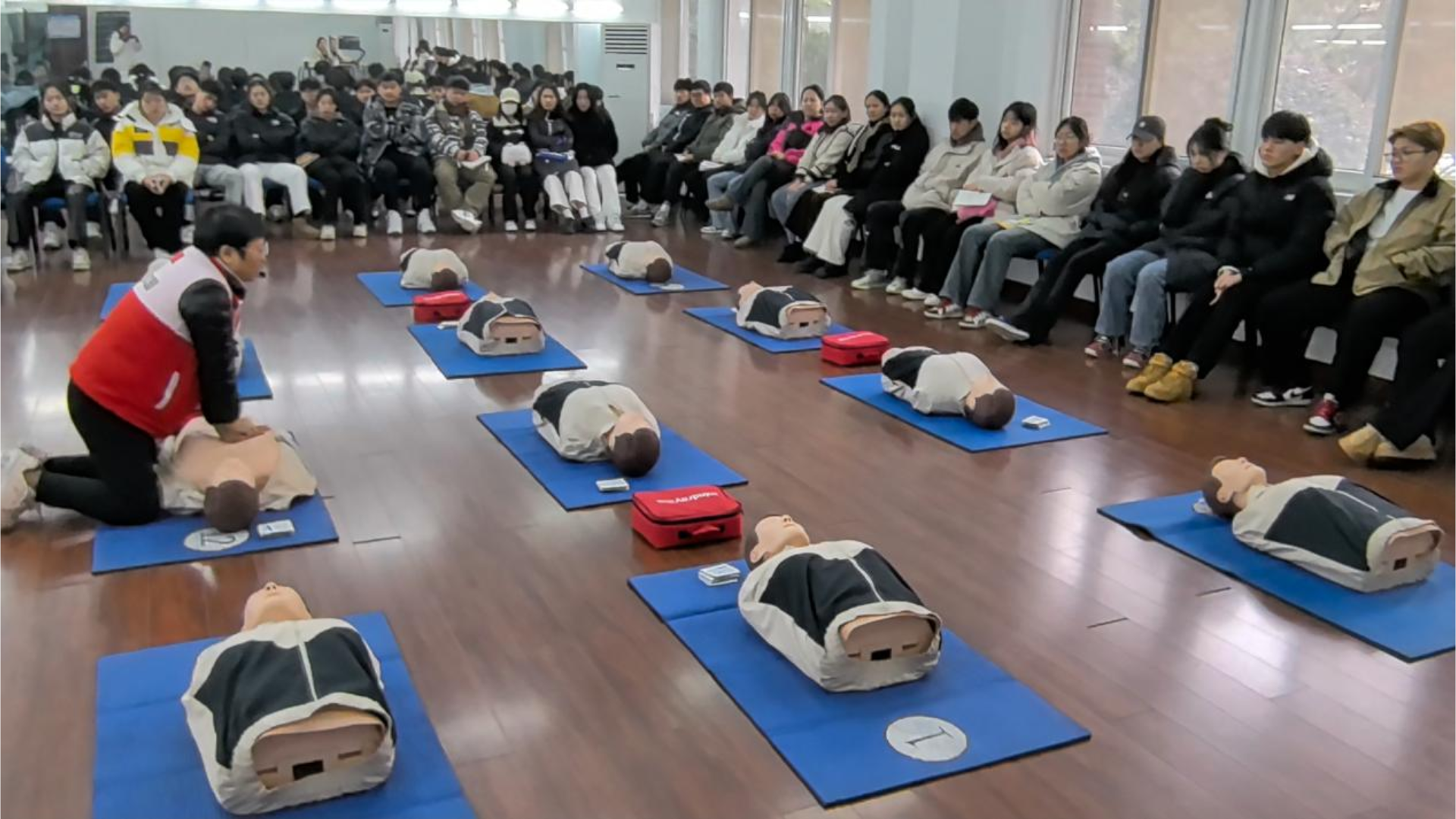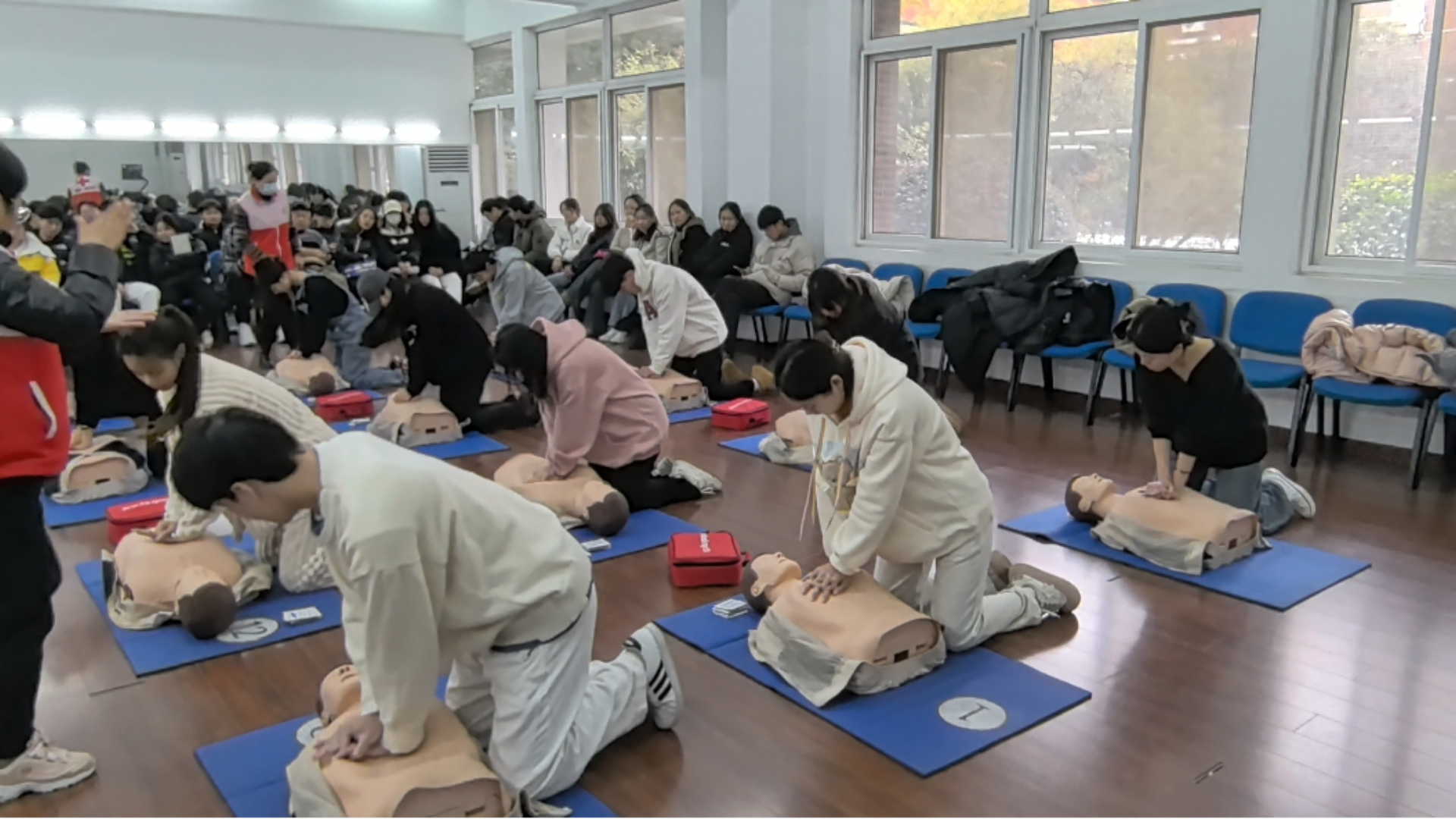 中国蓝豹(南京)救援队教官徐海、中国蓝豹(南京)救援队应急救护员苏海燕分别围绕心脏骤停现场心肺复苏术、自动体外除颤仪(AED)的使用、气道异物阻塞、伤口的包扎以及突发状况急救等内容进行了详细的讲解和现场演示,并指导学生运用CPR操作模拟假人、自动体外除颤仪(AED)、三角巾、绷带、敷料等包扎物品进行实操演练,以生动的语言,真实的案例为同学们上了一堂专业全面的急救课程。