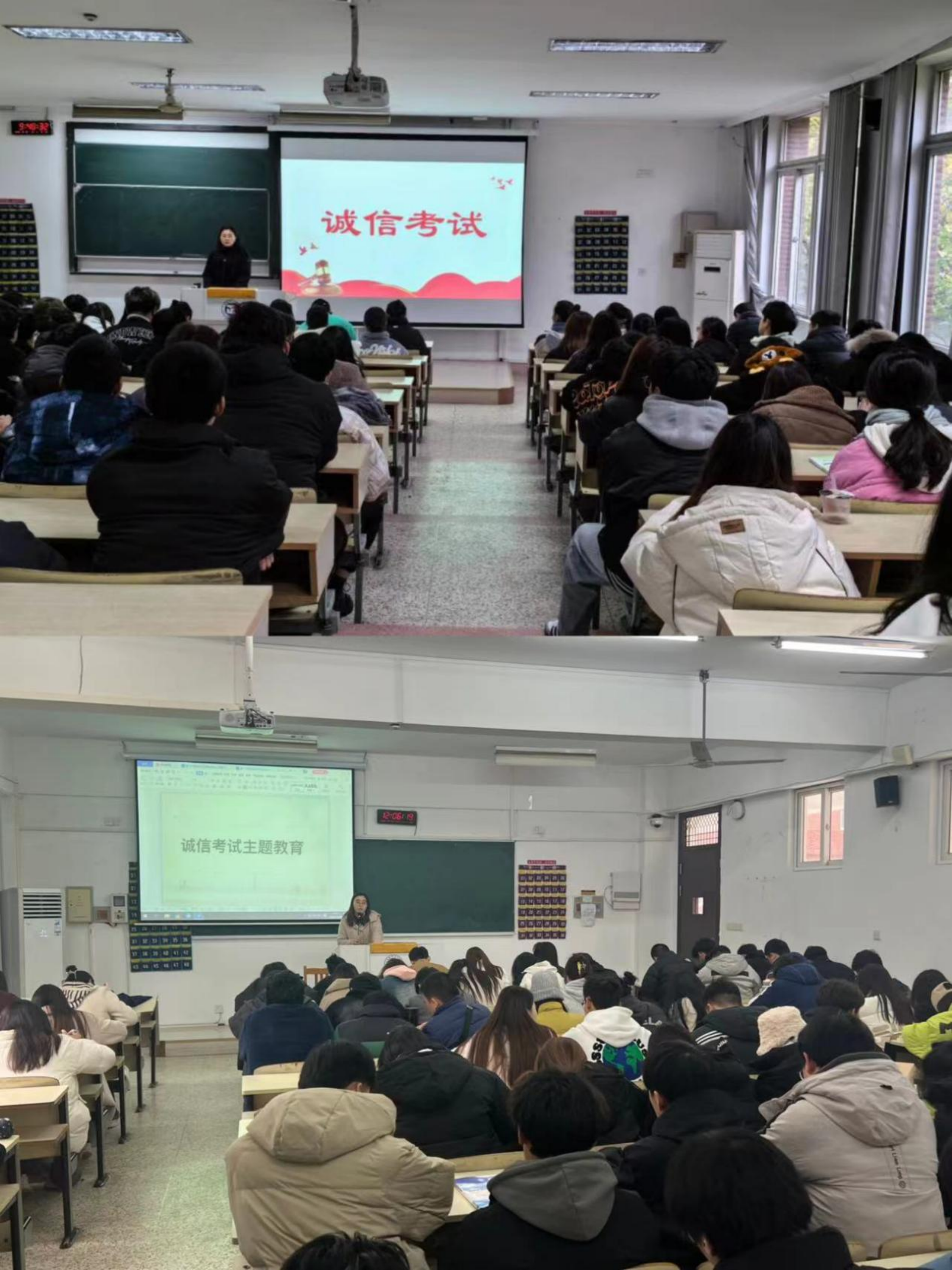 活动伊始,各年级辅导员对本次活动进行宣讲。详细讲述了关于天博体育 关于考试作弊处罚制度。接着,带领同学们观看了以诚信考试为主题的相关视频,用最直观的方式促使学生深入了解了考试作弊的危害。于文倩老师从学生角度出发,讲述学生为何在考试中失信,并指出考试作弊对学生的不利影响和严重结果,呼吁同学们要以诚信的品质赢得他人的尊重和信任。同时,她希望学生干部应该以身作则,发挥模范作用,自觉遵守考场纪律,以实际行动维护考场秩序。