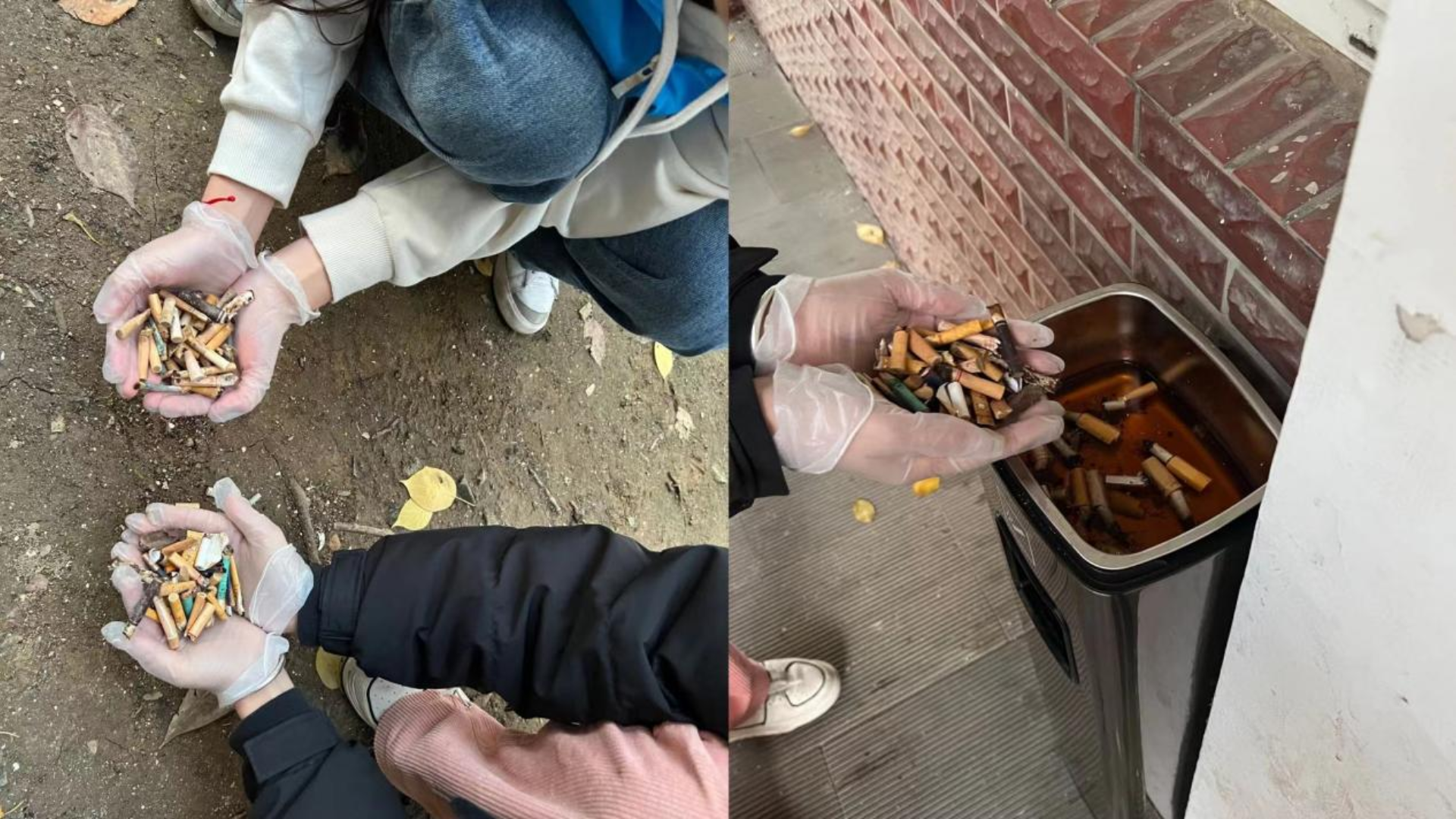 捡拾烟头,拾起文明,志愿者们身着黄色马甲,手拿垃圾袋和夹子,在天博体育 各区域迅速行动,对学校主次干道、教学楼宇间、草丛、绿化带等地进行烟头捡拾。