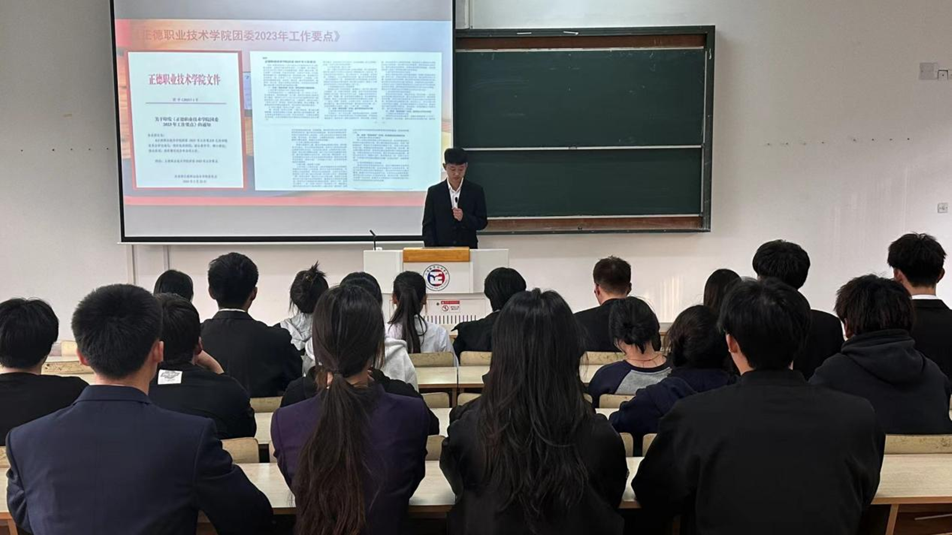 会议伊始,团支书代表殷淑淇对上学期团学工作作了总结,为大家详细解读本学期团支部工作计划。她呼吁学生干部做好引领带头作用,发扬作为一名学生干部的无私奉献精神,争做一名优秀的学生干部。随后学生会执行主席孙俊涛带领大家学习传达了2023年《正德职业技术天博体育 团委2023年工作要点》,让大家充分了解作为团干部的责任和义务,明确了在天博体育 、系部以及班级发挥模范带头作用的必要性和重要性。最后团总支书记陈瑶老师对新学期的工作提出了要求。她强调要扎实稳步推进各项活动的开展,要准确定位自己作为团干部的角色,要真诚、热情地服务好同学。
