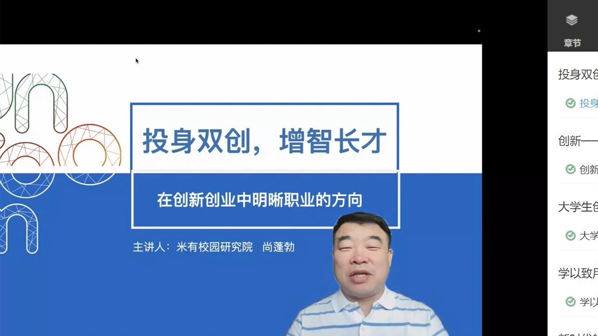 本次讲座内容,包括创业孵育指导的“创业大咖课”和“优秀创业成长故事分享”等。大家一起学习了《投身双创增智长才》、《创新创业,生涯发展的新引擎》、《大学生创业路径规划》、《学以致用专创结合萌宠经济》、《新时代的创业者如何把握未来的5大机遇》、《创业江苏创圆梦想》就业创业指导公益巡讲。