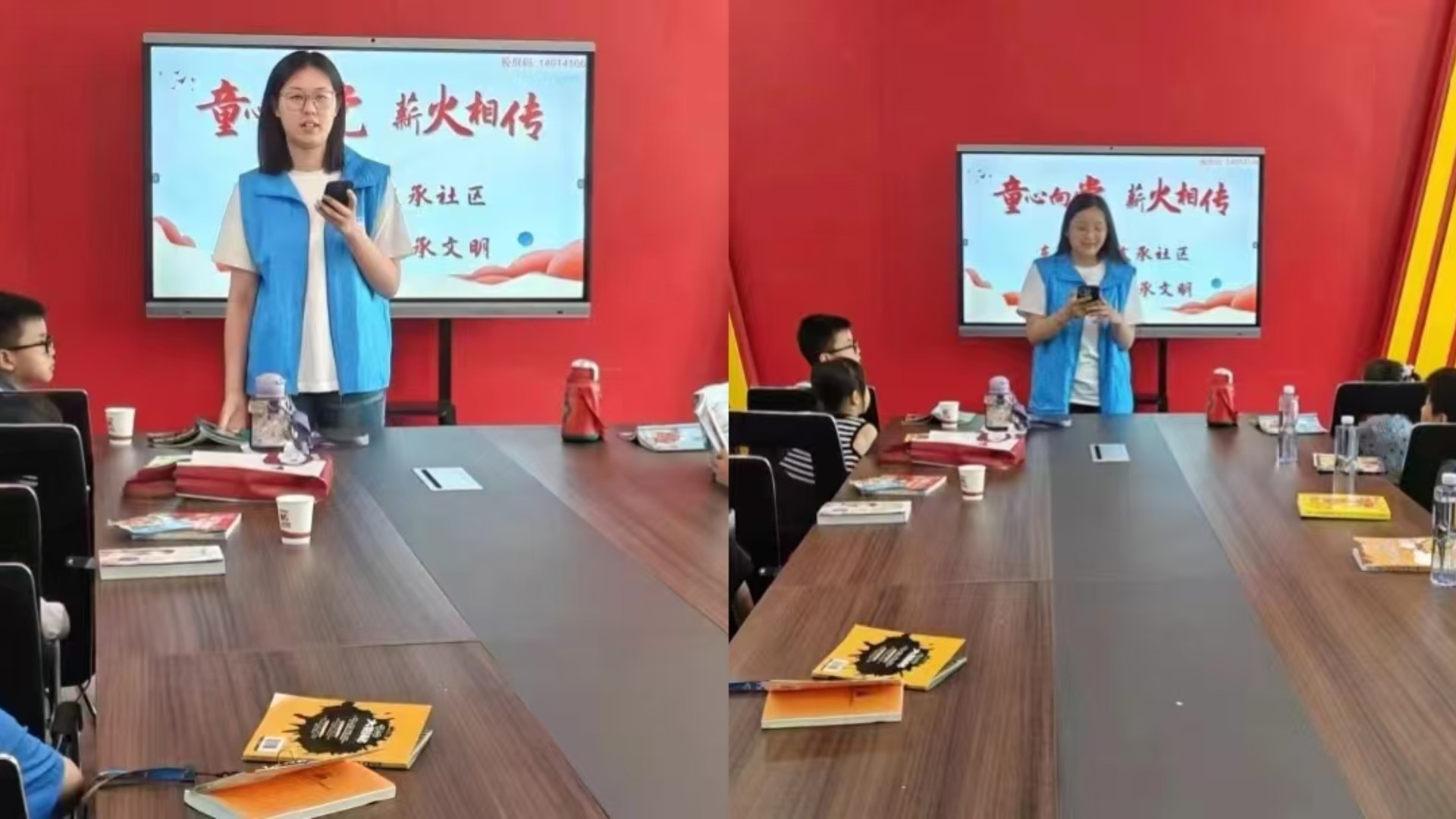 随后,跟着社区负责人的带领下我们为孩子们分享红色故事。看着孩子们纯真的眼神,实践团同学们讲述着革命先辈们的英勇事迹。从董存瑞舍身炸碉堡到小马倌敢引敌,孩子们听得入神。这些故事让他们了解到如今幸福生活的来之不易,在他们心中种下红色的种子。我们希望通过分享红色故事,激发孩子们的爱国情怀,让他们传承革命精神,努力成长为有担当的新时代少年。