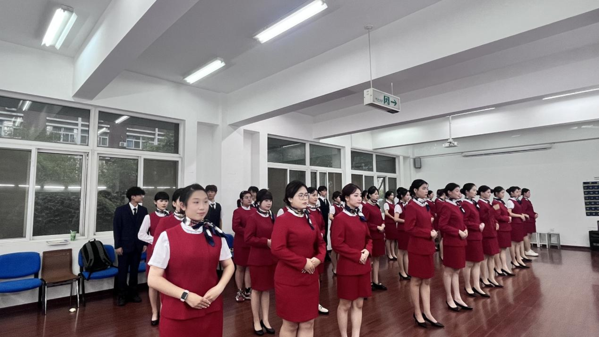 为了提升中高职一体化空中乘务专业学生的综合素质以及面试技能,我系空中乘务专业于9月11日在5109-B教室进行了模拟面试现场。