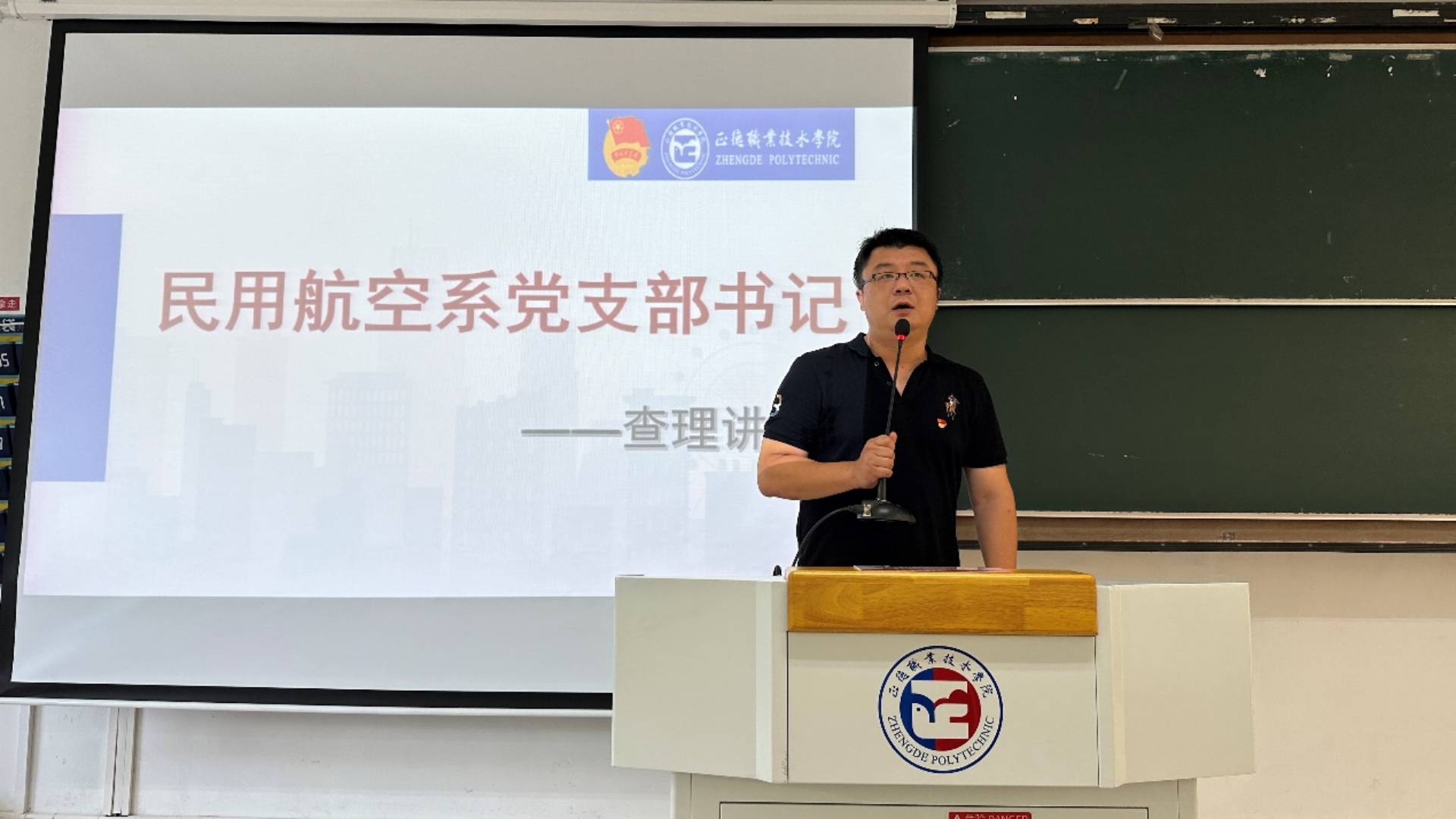 接着民用航空系党支部书记查理老师发言,他提出团干部应加强学习,提升自我,从实际出发,结合系情班情,协助老师做好同学思想工作,把握好班集体这个基层宣传阵地,及时向班级团员、青年传达党和国家的各项政策,他要求团干部首先要加强自身政治学习,强团性、坚信念、跟党走,时时不忘团干部的初心与使命,更要发挥好基层团组织领头羊的作用,把组织和思想建设好,使青年学子紧紧团结在党的周围、团的身边。