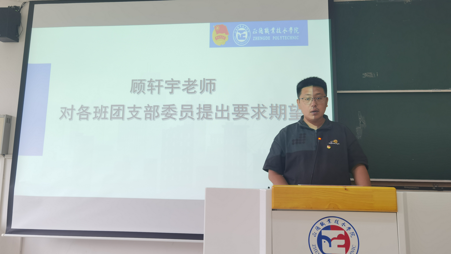 随后,民用航空系顾轩宇老师代表团总支欢迎2024级团支书加入民用航空系这个大家庭。他提出团组织不仅是青年学生的政治引领者,更是连接学校与青年学生的桥梁与纽带,作为团干部你们更是这一使命的践行者和推动者。希望新任团支书们能够以身作则,积极发挥模范带头作用,团结带领广大团员青年,共同为学校的建设和发展贡献青春力量。
