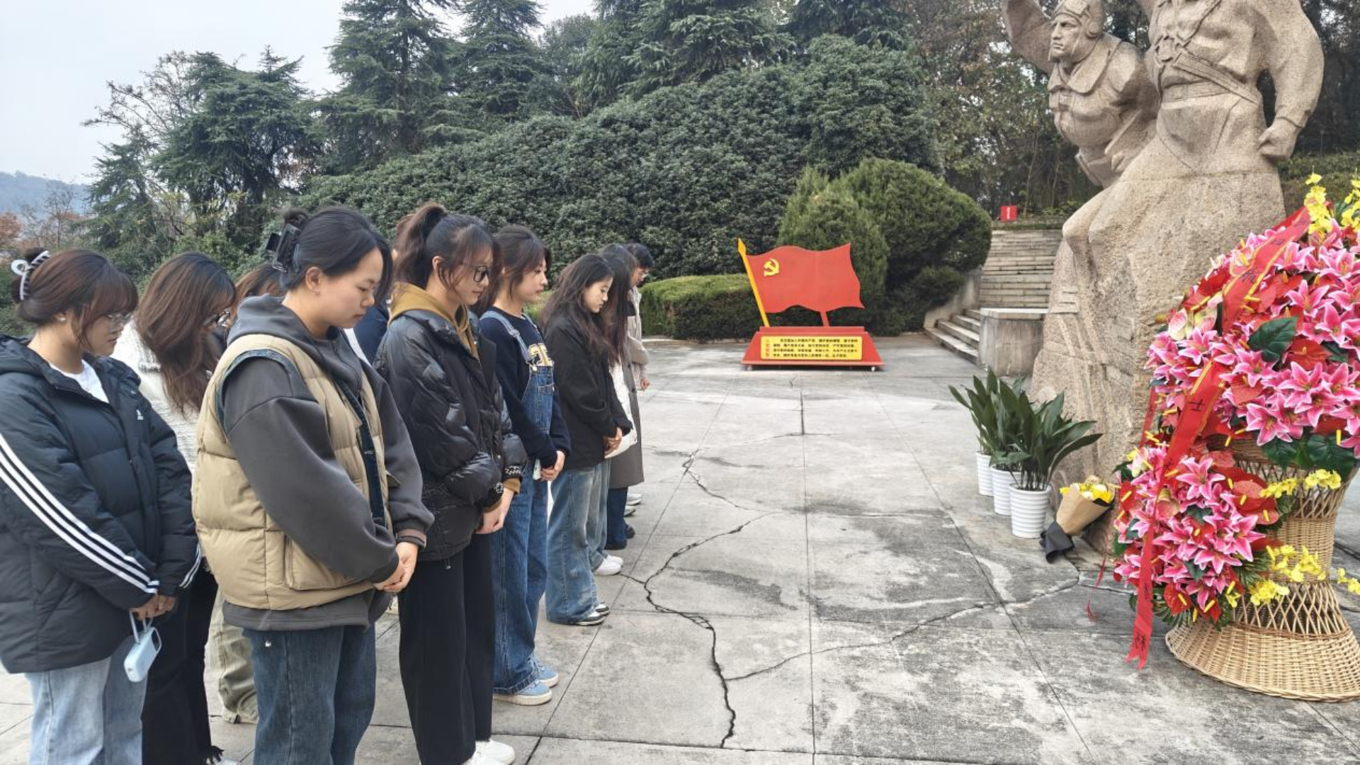 在纪念碑前,全体学生整齐列队,向长眠于此的航空英烈鞠躬默哀,寄托无尽哀思。学生代表发言,誓言将传承先辈精神,精进专业本领,投身民航事业,叮嘱学生铭记历史,把爱国热情转化为学习动力。