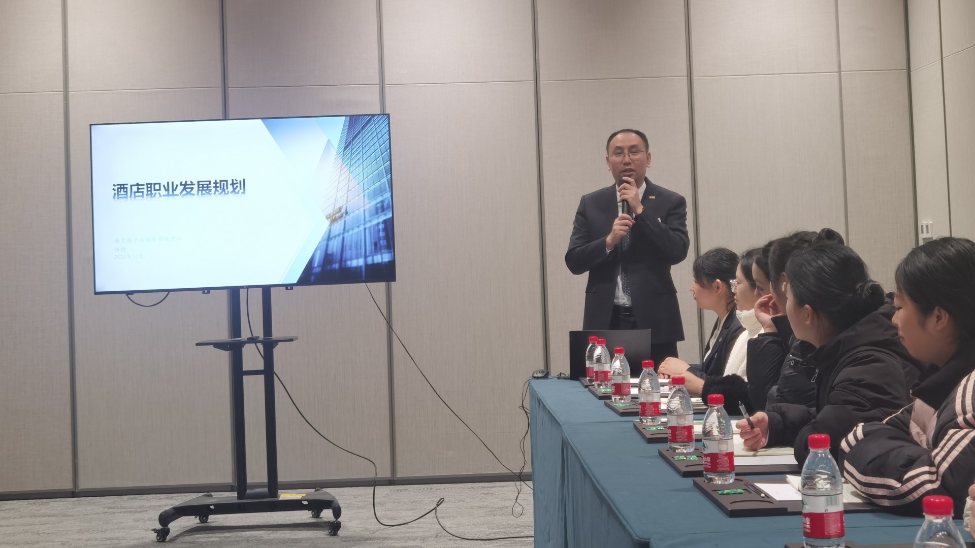 南京扬子江国际会议中心酒店人力资源总监伍劼,以自己的职业履历为起点,分享了他从业20年以来在酒店领域的深耕与成长经历。从基层岗位起步,通过持续的学习和经验积累,学生可以逐步晋升至部门主管、经理等高级管理岗位,用个人鲜活的案例激励在场的学生们,展现了酒店行业对个人职业发展的巨大潜力。他从酒店行业现状至未来用工趋势,从短期、中期和长期三个维度出发,深入浅出地阐述了学生在职场环境中如何设定既实际又可操作的职业发展目标,为学生们细致规划了职业发展路径。