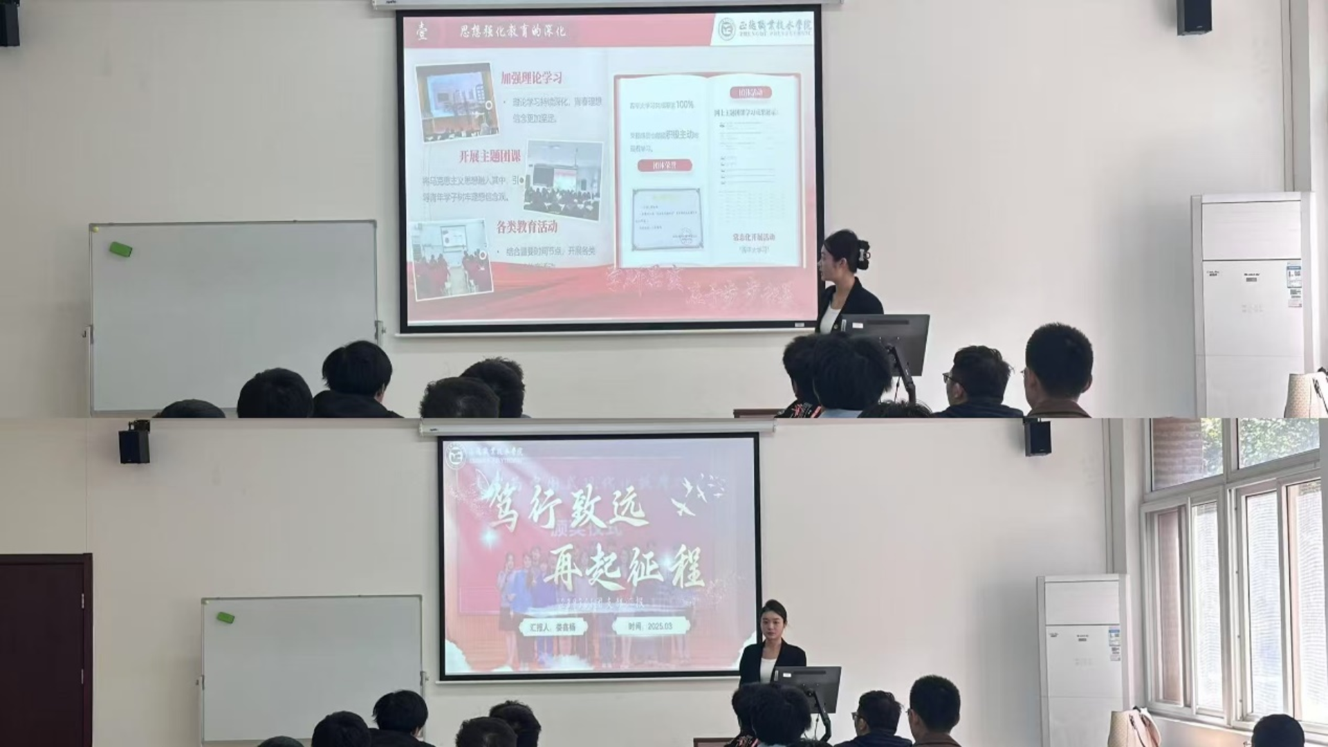 分享会上,荣获“红旗团支部”称号的239201团支部和239301团支部代表依次上台,围绕思想引领、组织建设、活动开展、特色品牌打造等方面展开分享。239301团支部以“筑牢思想根基,凝聚青春力量”为核心,分享了通过“青年大学习”线上打卡、主题团日活动、红色教育基地参观等多种形式,激发团员青年学习热情,提升思想觉悟的实践经验;239201团支部则重点介绍了团支部在组织生活规范化建设上的创新举措,从团员发展流程的严格把控到“三会两制一课”制度的扎实落实,展现了团支部严谨高效的组织管理模式。