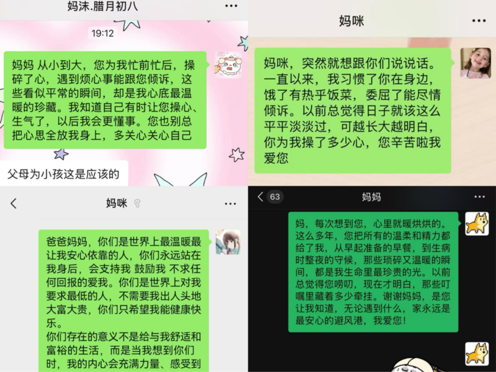 活动中,不少同学忆起父母为自己成长付出的点滴:那凌晨五点精心准备的爱心早餐,是父母深沉的爱意;冒雨送伞时被雨水打湿的身影,饱含着无尽牵挂;犯错时耐心的教诲,传递着殷切期望。这些平日里的细微瞬间,此刻汇聚成浓浓的感恩之情,在同学们向父母表白的话语中流淌。爱,在这个 520 被大声诉说,在对父母的表白中持续升温。