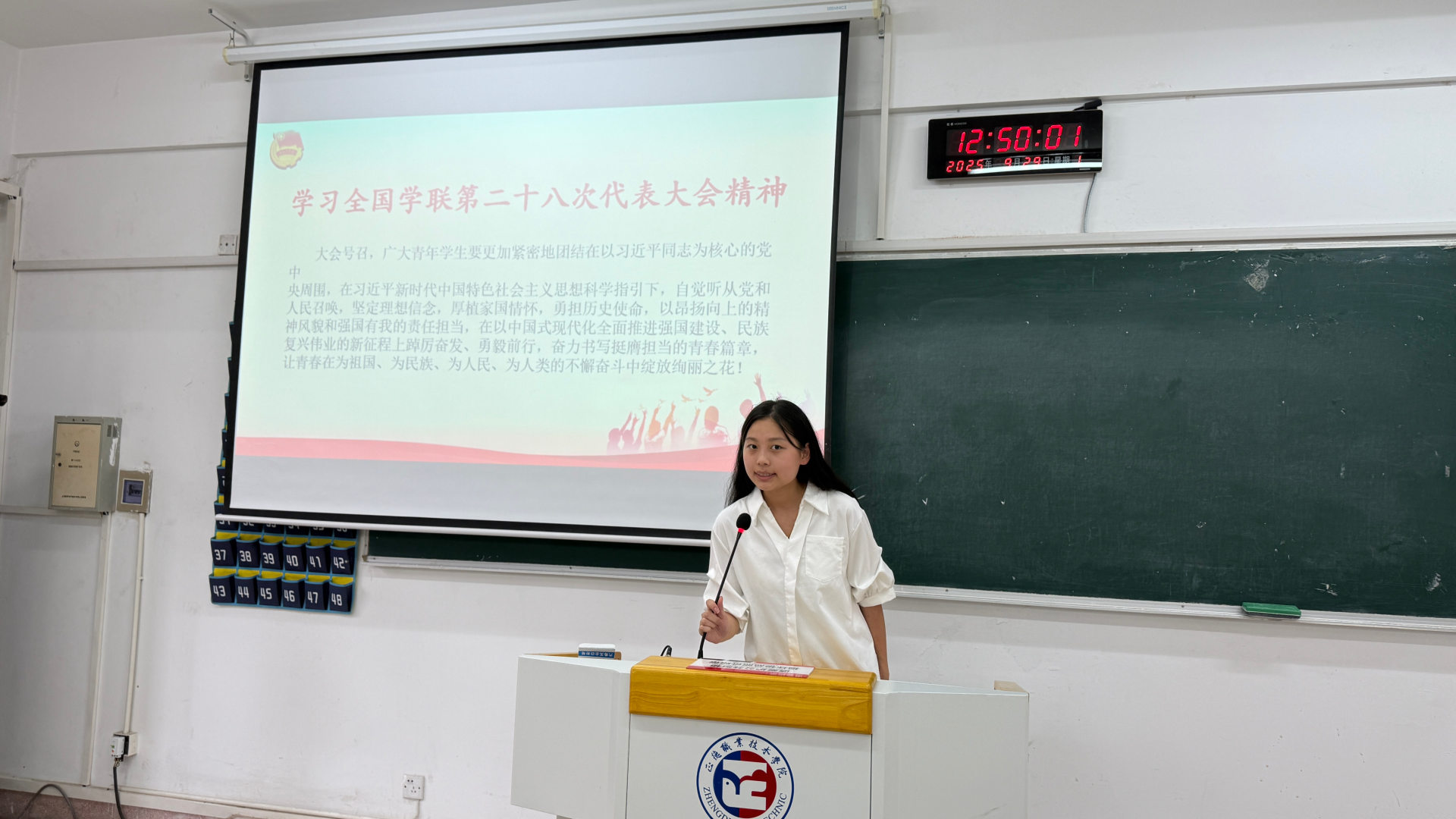 最后,由陆靖带领全体成员通过图文资料与要点解读,全面回顾了全国学联二十八大的议程脉络与核心要义。大家深刻认识到,学联组织作为联系青年学生的桥梁纽带,在引导青年投身强国伟业中发挥着不可替代的作用,为后续结合航空特色开展工作筑牢了思想根基。