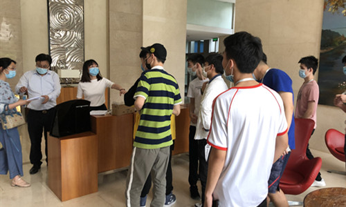 此次实习受到了十四所的高度重视和热烈欢迎,由位系统事业部的袁爱琴老师统一接待。因在疫情期间,同学们被安排在国睿金陵酒店度过14天的观察期。随后辅导员胡娜老师对10名实习生进行入所前的思想动员和注意事项的宣导,李杰老师给实习生发放保密协议及政审材料,帮助实习生完成酒店入住等问题。