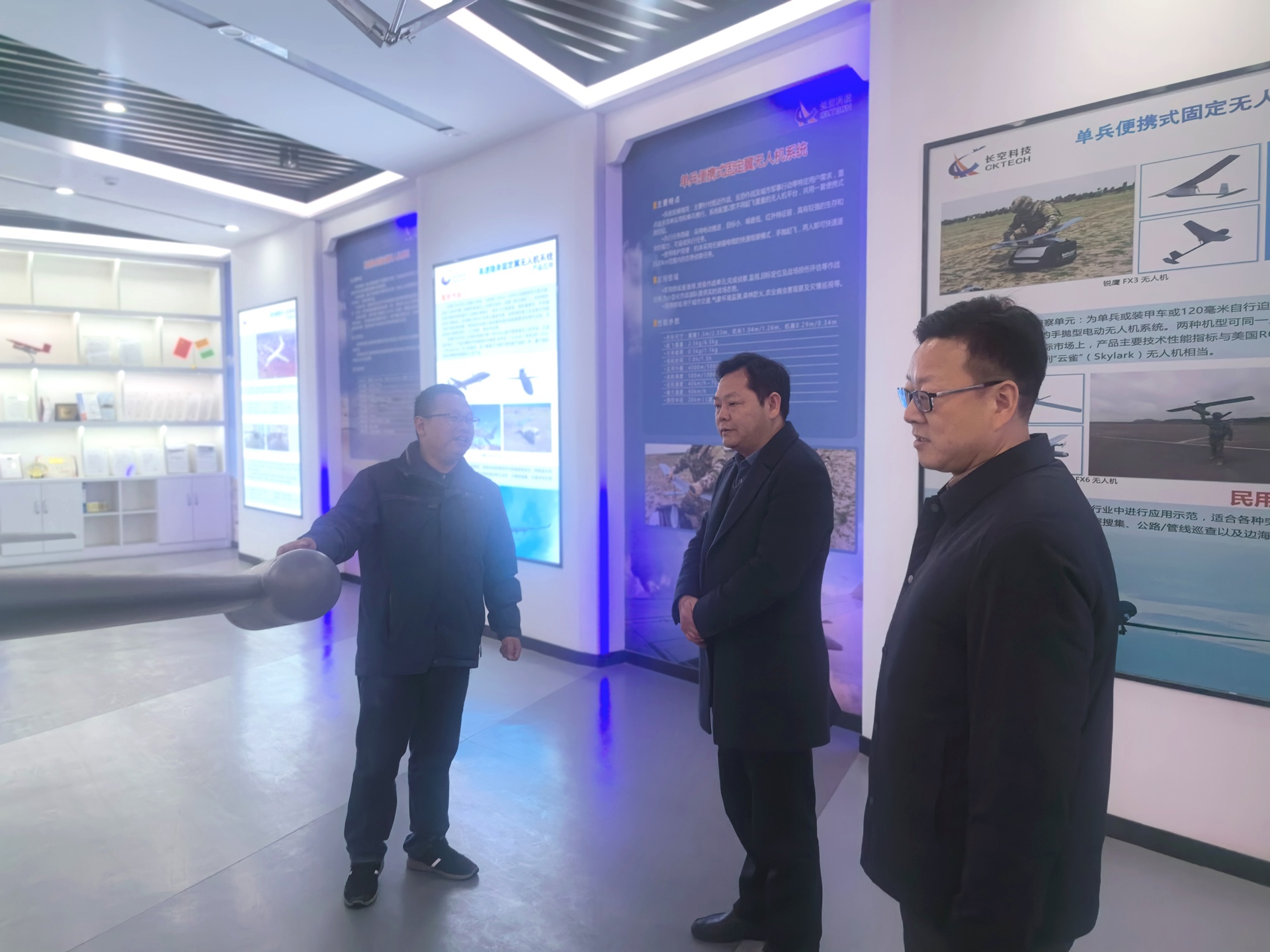 孙永荣一行参观了长空科技的综合展厅,杨波、黄绍军、何留洋等陪同参观,并做了公司情况介绍。