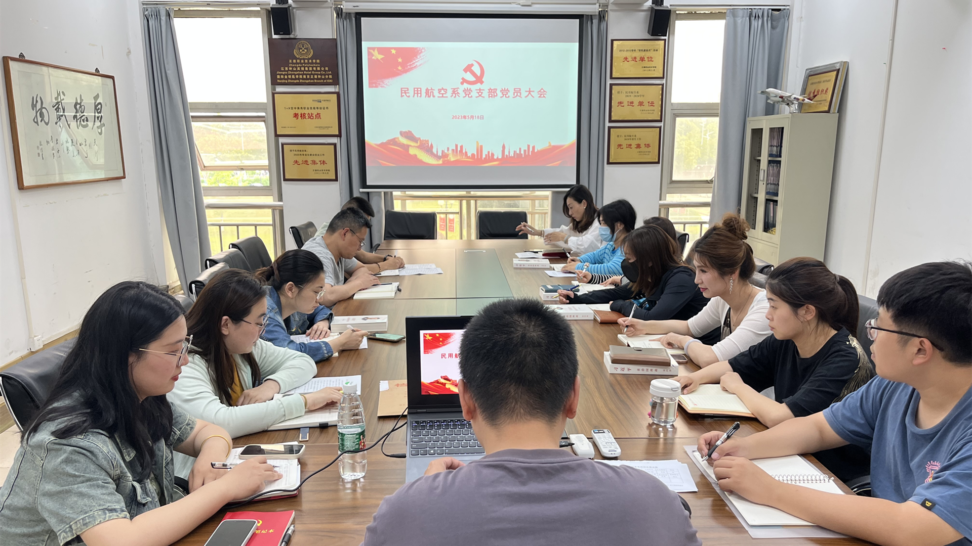2023年5月18日下午,民用航空系党支部召开支部党员大会。大会审议、讨论、表决了预备党员高德豪同志的转正问题,并组织所有党员进行理论学习。为开好本次大会,天博体育 党群工作部陈敏同志到会指导,大会由党支部书记虞骏卿同志主持。