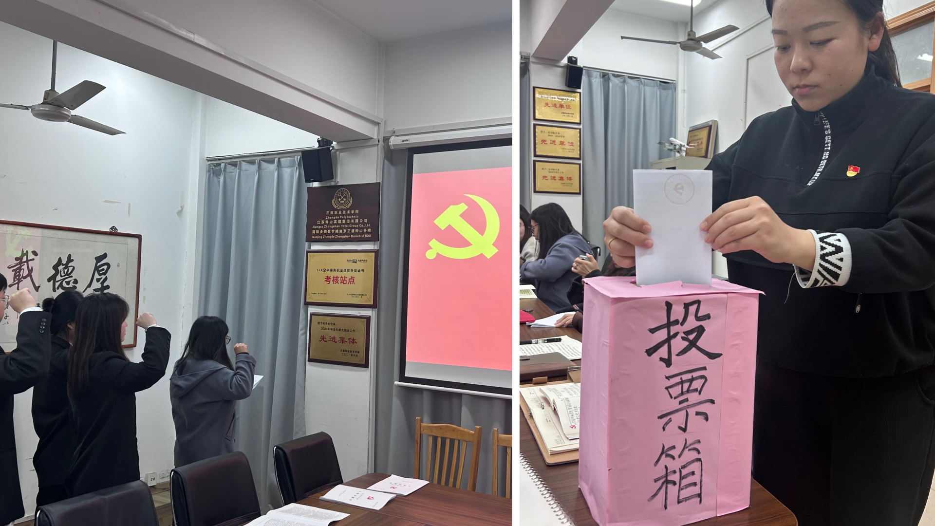 大会第二项议题讨论表决是否同意张琦等6为同志发展为中共预备党员的问题。经过6位同志汇报有关情况、入党介绍人介绍相关情况、支委会审查、参会党员充分讨论并投票表决大会同意接收6位同志为预备党员。虞骏卿要求6位新同志要针对自身还存在的不足之处,明确努力方向,进一步加强学习,努力工作,争当一名合格的共产党员。