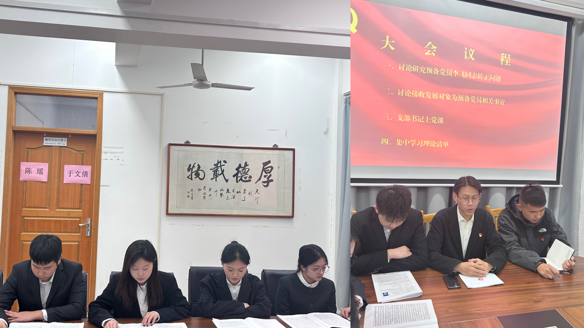 2023年12月7日,民用航空系党支部召开党员大会。本次大会主要包括四项议题。分别是讨论研究预备党员李飞同志转正问题、讨论接收发展对象为预备党员相关事宜、支部书记上党课以及集中学习本月理论清单,大会由支部书记虞骏卿主持。