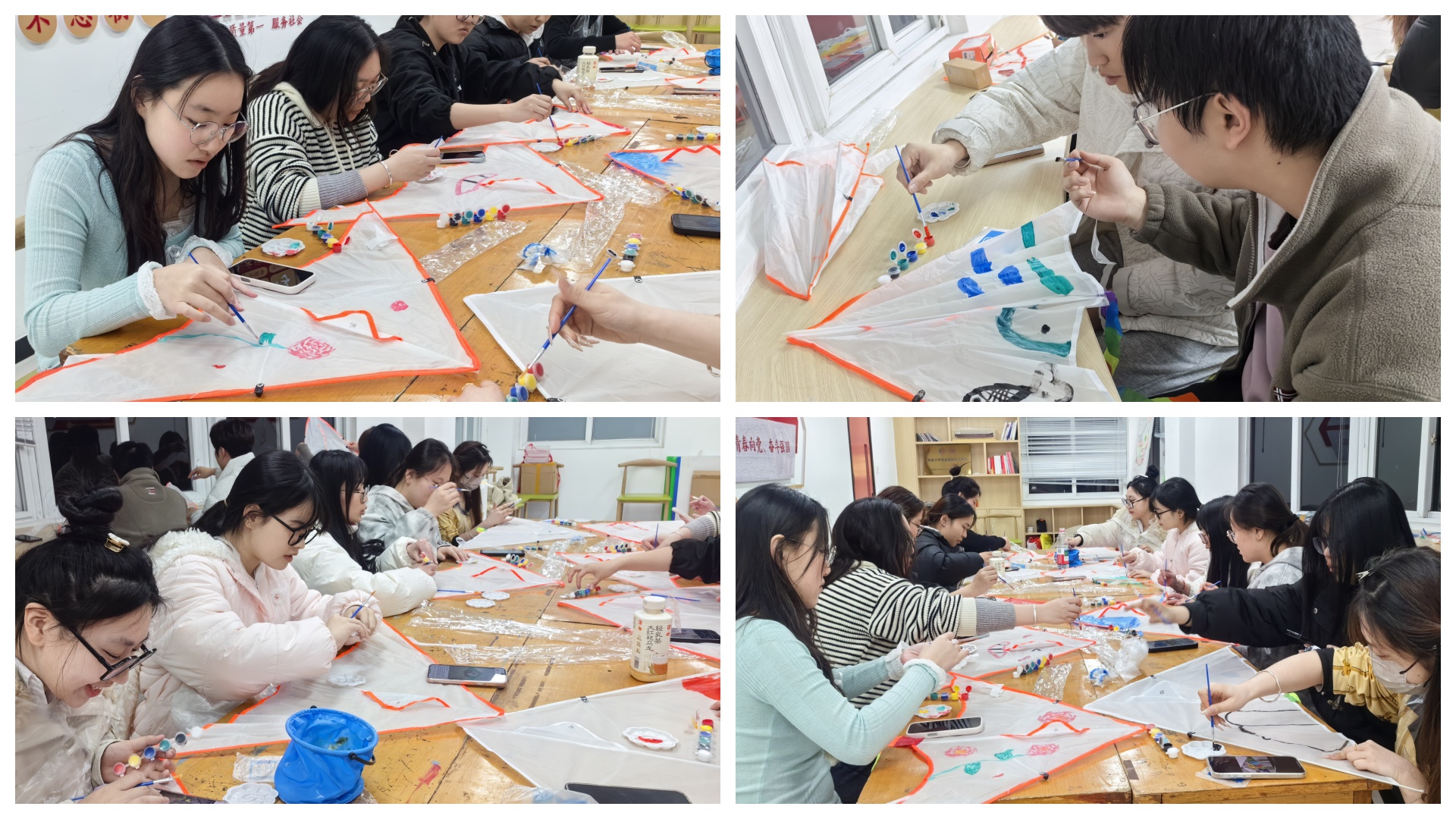 3月20日,在“一站式”学生社区内,同学们热情高涨,纷纷参与到风筝的制作中来。两人一组,默契配合,有的同学充分发挥美术功底,用画笔在风筝上描绘出栩栩如生的图案:活泼可爱的卡通人物、娇艳欲滴的花朵、灵动翩跹的蝴蝶……;另一部分同学则专注于骨架的搭建,细心绑扎着每一根竹条,确保风筝的稳固与平衡。经过一番精心制作,一只只承载着希望与梦想的风筝诞生了。