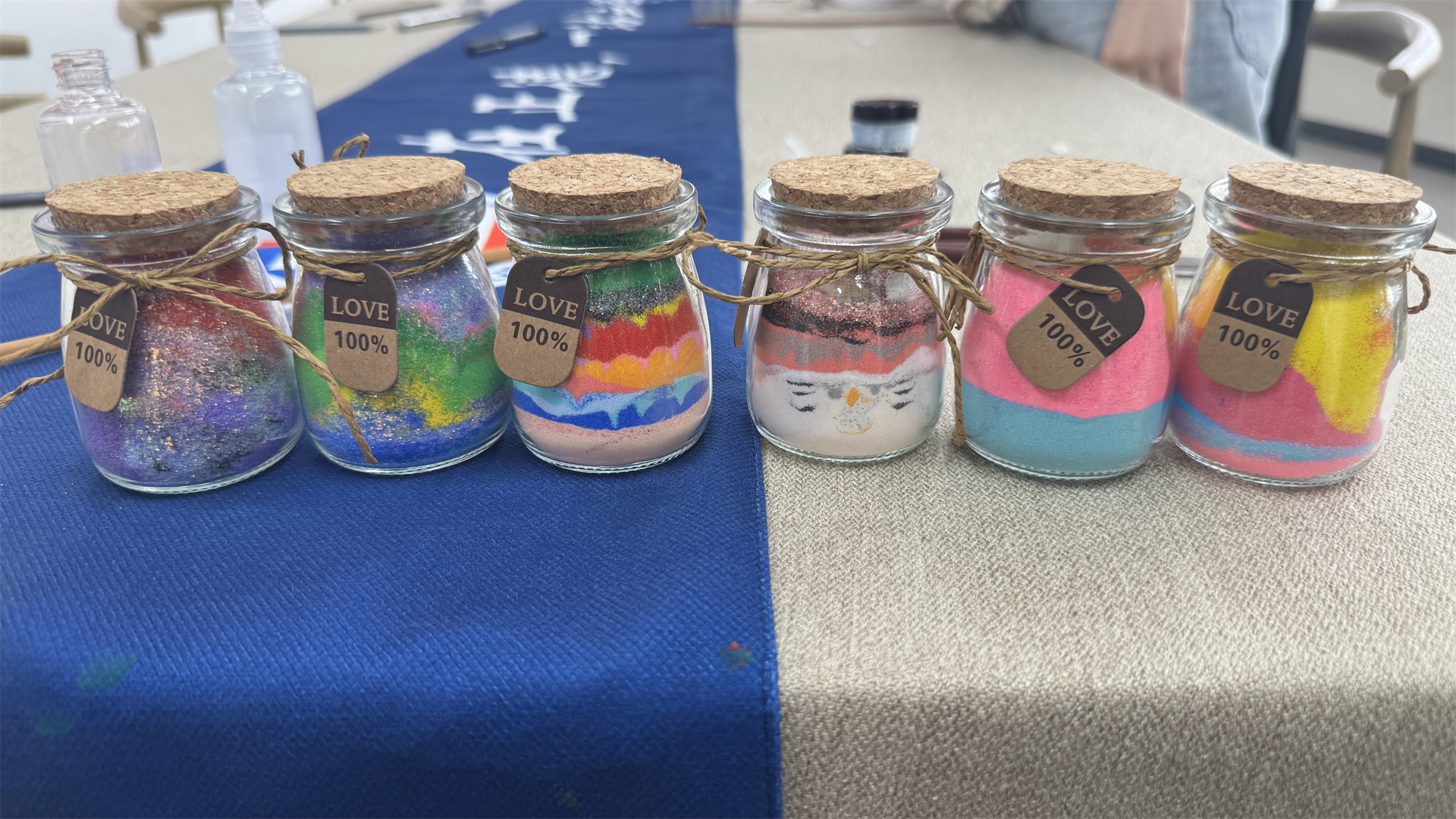 在随后的手工制作环节,同学们亲手制作了属于自己的彩色流沙瓶。不同色彩的流沙在瓶中缓缓流动、交织,象征着各种情绪的沉淀与融合。制作过程中,同学们全神贯注,享受着这份难得的宁静与专注。大家纷纷表示,流沙瓶的制作过程不仅令人放松解压,更让他们体会到了情绪的流动性,学会了将烦恼沉淀,将美好留存。