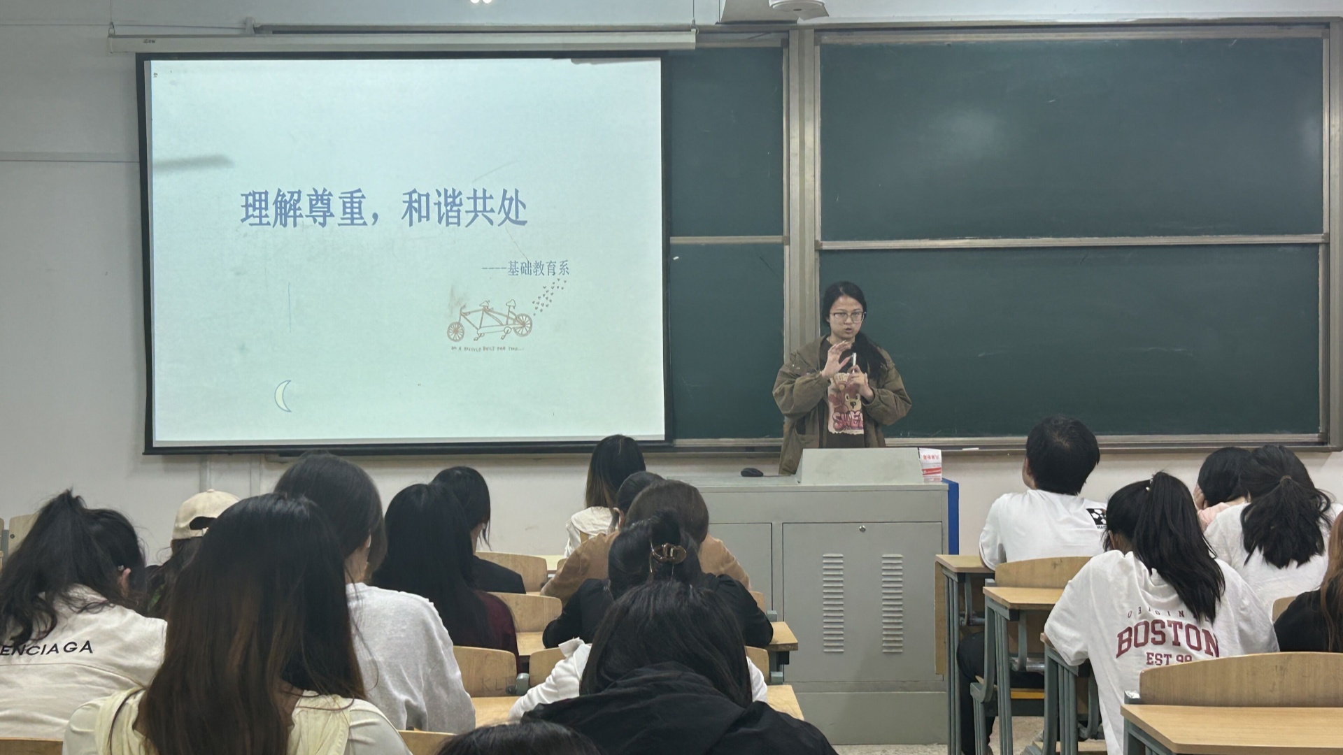 为巩固提升文明宿舍、标兵宿舍的持续创建氛围,不断强化学生的心理健康教育,更好的营造安全和谐的宿舍环境,基础教育系以“理解尊重 和谐共处”为主题于6月20日组织学生干部、相关厅室长在9207教室开展主题班会。