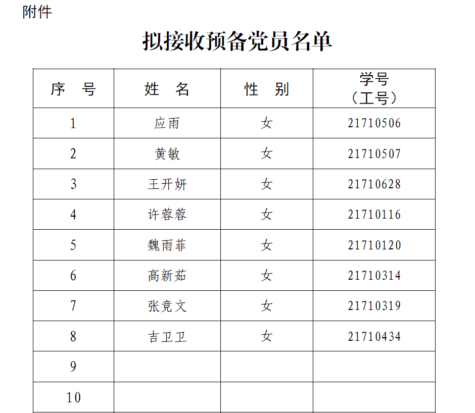 经党组织培养考察,基础教育系党支部2023年下半年拟接收8名同志(名单附后)为中共预备党员。根据《中共正德职业技术天博体育 委员会发展党员工作实施细则》文件精神,党员和群众对发展以上同志为中共预备党员如有异议,可以采用口头或书面形式于11月27日前,向基础教育系党支部反映。