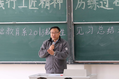 颁奖仪式结束后,该系主任杨卫东作了总结讲话。他鼓励同学们向获得荣誉表彰的优秀学生看齐,牢牢守住做一名合格幼儿教师的初心,向优秀同学学习,对照幼儿教师的标准,认真找差距,补短板,用实际行动“践行工匠精神历练过硬本领”,做到“专注、专业”,将精益求精的态度落实在日常学习、工作中,努力营造优良学风、班风,为成为合格的幼儿教育工作者打下基础。