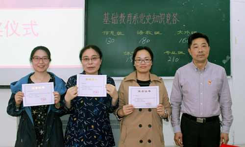 党课结束后,计算机、语数、英语、体育、专业组的老师们以课程组为单位,进行了党史竞答,思政组任志远、徐晓霞老师担任评判。竞答分必答题和抢答题,老师们在赛前均认真学习了党史有关知识,竞答中,各组选手们相互鼓励、你追我赶,比分交替上升;思政老师适时点评,帮助理解;观战的老师和同学们也积极参与竞答,场面气氛热烈,将本次活动推向高潮。