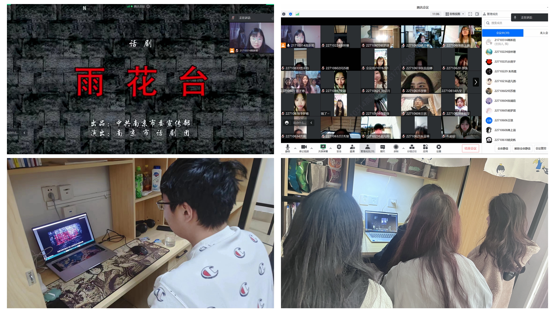3月11日晚,团总支副书记高新茹和厉宇宁组织同学们线上观看了《雨花台》话剧。岁月的史书在眼前书写,让同学们提前聆听了一场雨花台革命烈士为党为国捐躯、可歌可泣的英雄之歌。