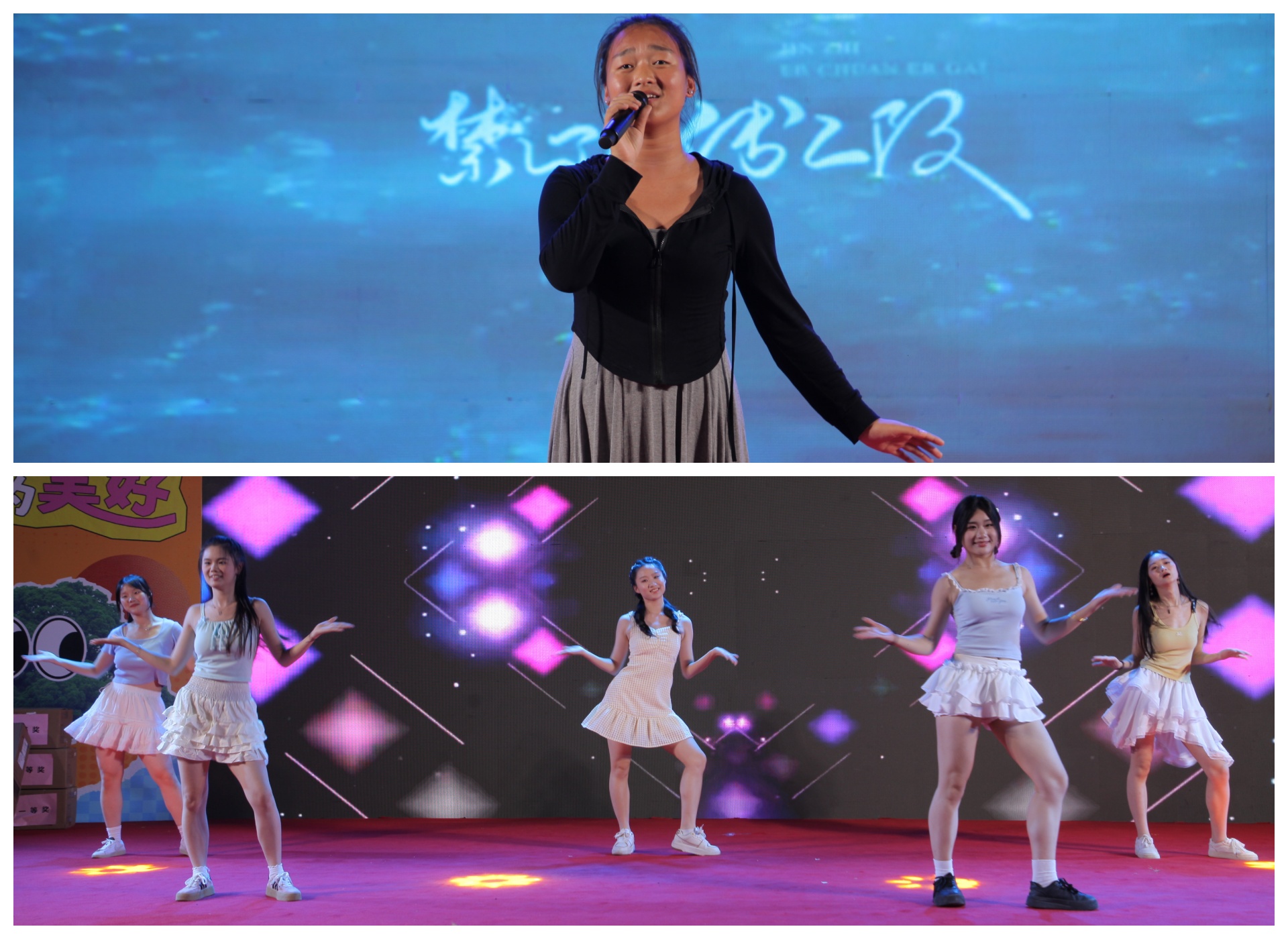 志愿者们还在晚上为社区文艺展演活动准备了表演,展现我系学子的专业技能。石立青同学一首《尚好的青春》勾起大家对青春的回忆,戴羽宣汤文雅等同学带来的《日不落》舞蹈让现场的气氛达到高潮,为社区增添了一道靓丽的青春色彩。