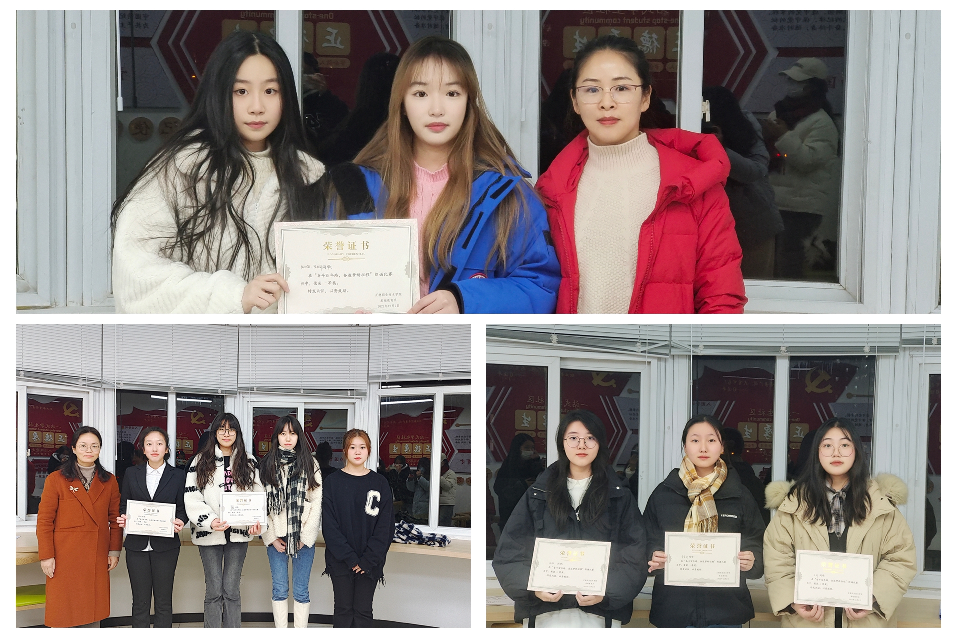 本次诵读比赛深受师生喜爱,反响热烈。经过层层选拔和激烈角逐,共有12组同学进入决赛,决赛于12月2日在“学生一站式社区”举行。本次比赛邀请了公共教学部语文组周一星、基础教育系党支部书记杨春娟、基础教育系团团总支书记魏玮、电子与信息技术系执行主席常思奕和经济与管理系执行主席缪文骅担任评委。