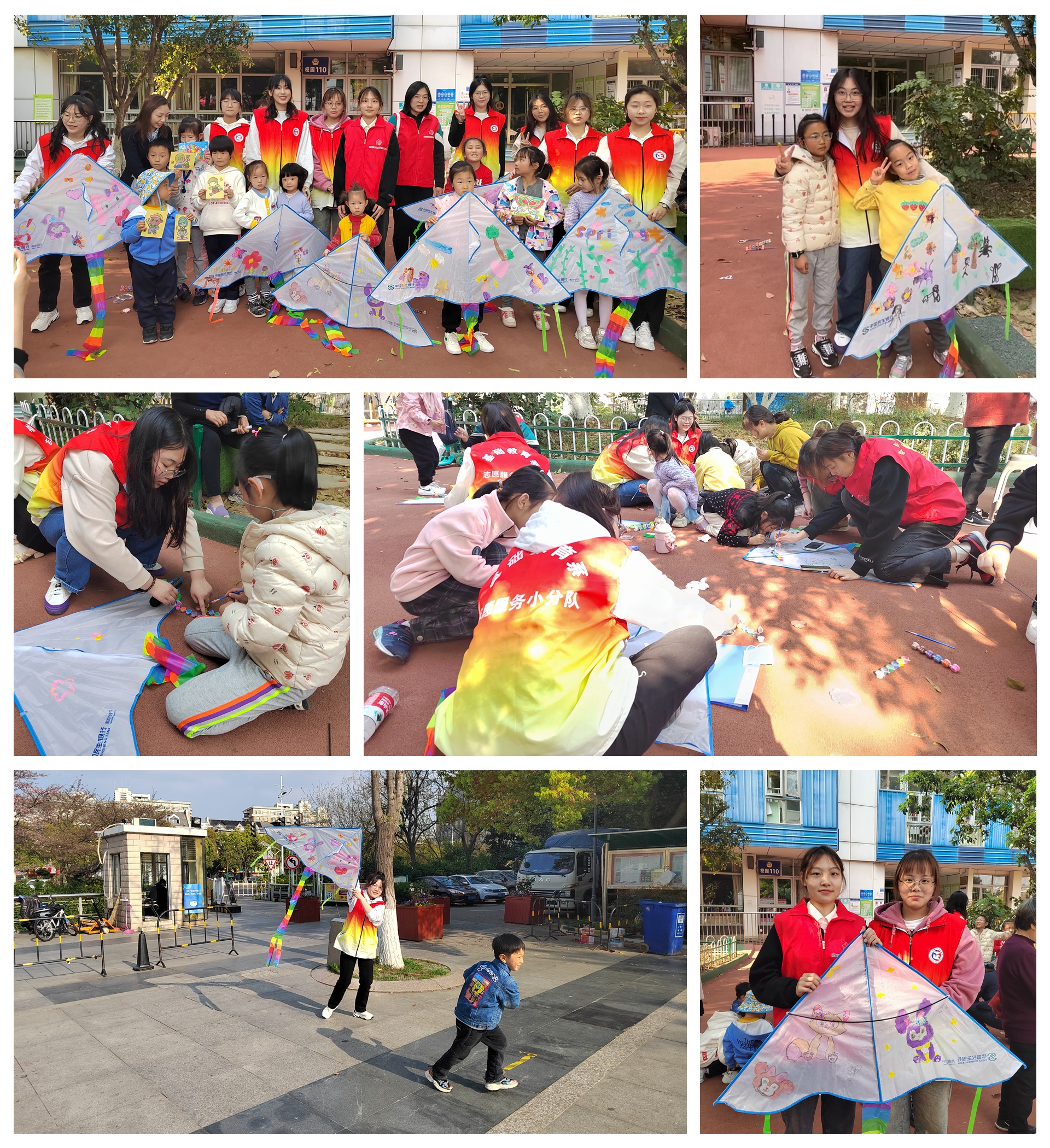 放风筝是清明习俗之一,志愿者们带领孩子们一起通过手绘风筝,让她们更加亲近传统文化。孩子们拿起画笔在风筝上勾勒、描绘、涂鸦,制作出一个个形态各异、色彩斑斓、活灵活现的彩色风筝。风筝制作完,志愿者们又带着孩子们风筝拿到社区小广场放飞天空,遥寄相思。