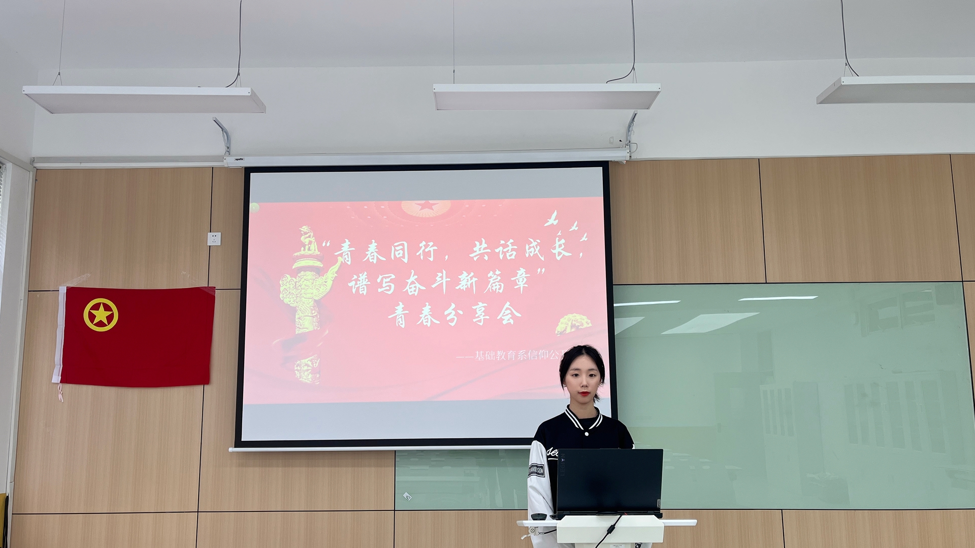 为进一步组织引导广大青年学生深入学习宣传贯彻习近平新时代中国特色社会主义思想和团十八大会议精神,加强共青团思想政治引领工作,根据《关于实施高校共青团“信仰公开课”计划的通知》文件精神和院团委工作安排,基础教育系团总支于4月27日下午在9205教室开展了一场别开生面的信仰公开课。基础教育系党支部书记杨春娟、辅导员朱雯和我系优秀青年学子参加。团总支书记魏玮主持本场信仰公开课。