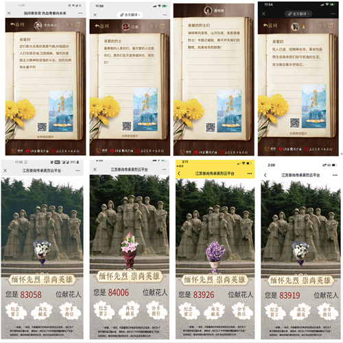 思政课任志远、徐晓霞老师分别以“清明忆党史,鲜花诉忠魂”“清明祭英烈,共筑中华魂”为主题,将英烈的事迹融入课堂,唤起同学们作为一名新时代正德青年的使命感;大学语文周一星老师从中华优秀传统文化入手,介绍了清明节的来历与时代价值。老师们一起号召同学们在江苏崇尚传承英烈云平台,参与了“云祭扫”活动,用这种特别的方式缅怀先烈。周一星老师还动员“诗韵”朗诵社同学们参与中国雨花台公众号发起的百位团员青年清明“云诵读”纪念英烈活动,得到了朗诵社同学们的热列响应。同学们纷纷加入到云祭扫活动中,向英烈们献上一束束鲜花,并以饱含深情的诗句和文字抒发了自己对英烈的真挚情感。