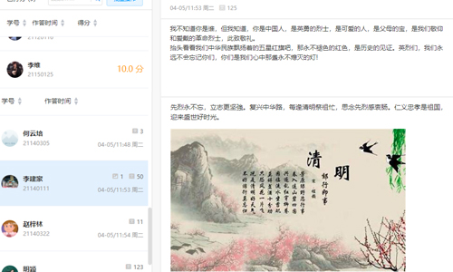 思政课和大学语文课教师充分发挥思政课程和课程思政育人作用,相继在课堂上组织学生开展了清明“云祭扫”活动,以此缅怀英烈事迹,激发学生家国情怀和使命担当。