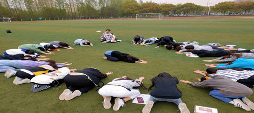 全班34名同学换上彩色的运动服,跟着辅导员一起,走进操场,共同开展瑜伽练习,享受春风的同时,拉伸筋骨。大家或围成圈,或抱成团,或手拉手,或组成小队,动作虽然达不到那么标准,但是每个人脸上都洋溢着笑容,感受着身体舒展,互相配合完成动作的喜悦。整个班级和辅导员融在一起,互助互动,氛围特别好。