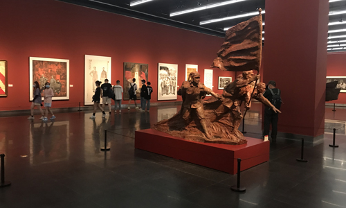展览紧扣建党百年主题,无论是作品的征集打磨、特邀创作,还是展陈的篇章布局、策划设计,都力求将其打造成为党史学习教育的艺术课堂。