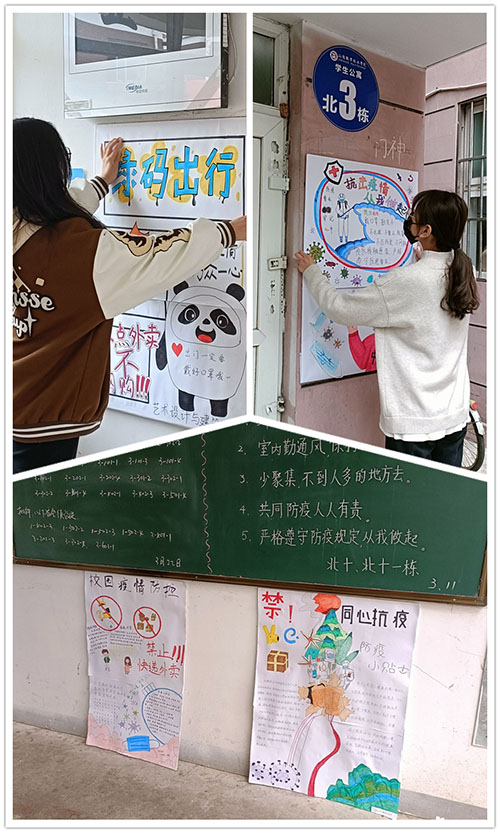 “同心抗疫,绿码出行”,近日,同学们来往宿舍区,能看到一幅幅手绘海报提醒大家防疫小细节,连“冰墩墩”也来宣传抗疫小常识啦!