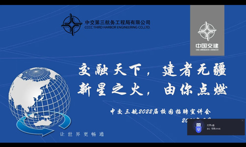 为切实做好本系毕业生就业工作,大力构建毕业生与用人单位的交流平台,积极为用人单位输送应用型人才,贯彻落实天博体育 关于学生顶岗实习的要求,2022年4月12日艺术设计与建筑工程系招聘会活动正式启动,本次邀请中交三航局第三工程有限公司召开线上“空中招聘会”。
