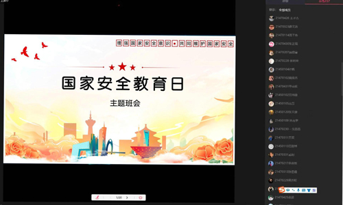 今年国家安全日教育活动的主题是“树牢总体国家安全观,感悟新时代国家安全成就,为迎接党的二十大胜利召开营造良好氛围”。本次国家安全教育教育主题活动以班级集中线上学习与宿舍小组分散学习相结合的形式开展。各班班长认真组织,同学们积极响应。
