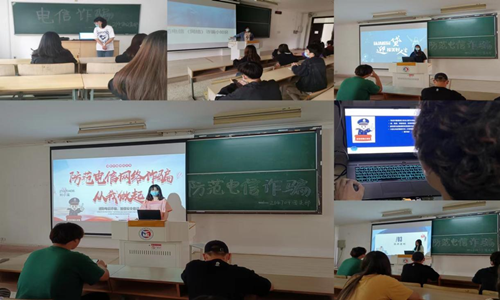 其一是通过ppt的形式介绍相关内容:电信诈骗的蔓延性大、发展迅速、常用骗术、造成的损失、常见的电信诈骗类型、常见的电信诈骗案例等,将防范电信诈骗的口诀和方法交给同学们。