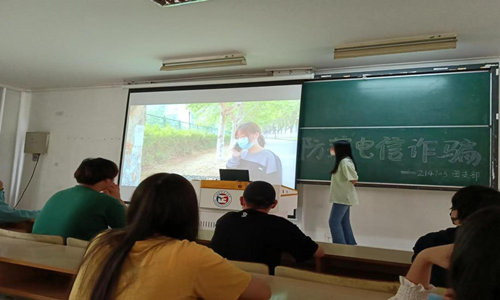 其二是通过播放同学们自己制作的短视频的形式来向同学们展示与我们生活十分贴近的电信诈骗的形式,增强学生在生活中遇到诈骗现象灵活应对的防范意识。通过学生的演绎来拉近与同学们之间的距离,更生动地让同学们明白电信诈骗的危害!