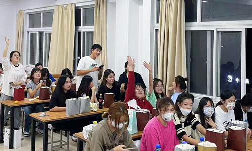 活动全程都充满了仪式感。班委们提前为大家准备好了零食、水果、饮料等,并布置好了场地。主持人介绍完中秋节的来历后便开始了其乐融融的游戏环节。猜灯谜是中秋节的传统娱乐项目之一,在这个环节女生们踊跃举手,大放异彩。当然男生们也不甘示弱,在后来的抢椅子大战中玩儿的不亦乐乎。同学们纷纷开怀大笑,气氛十分欢乐。