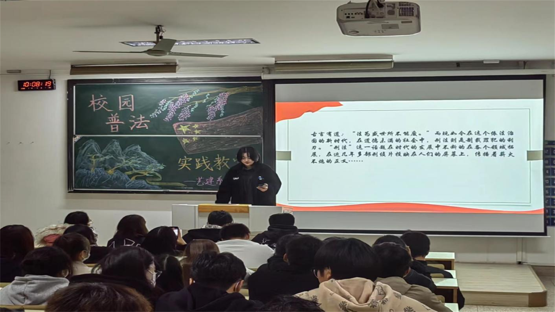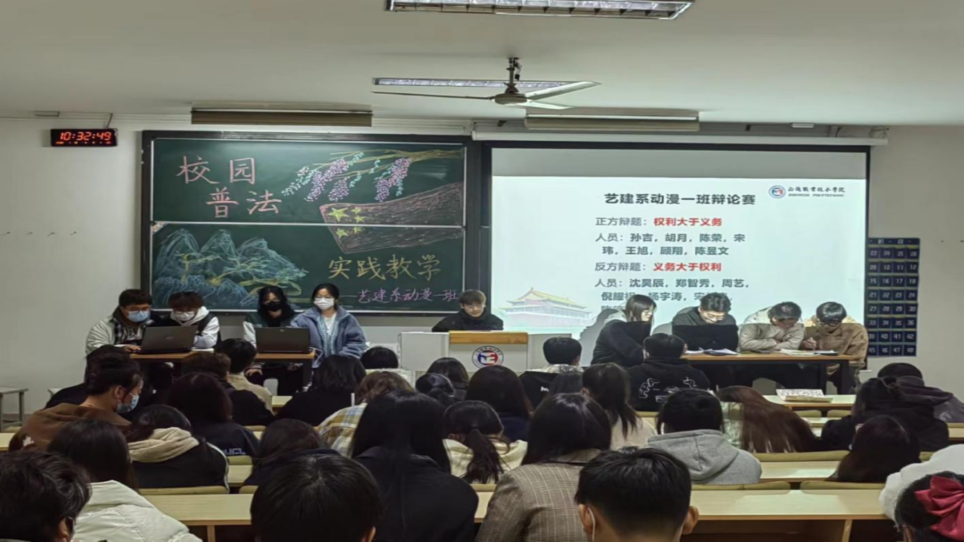 为增强学生们的法治意识、营造崇尚法律、遵守法律的天博体育 氛围,同时进一步提升学生们法、学法、守法、用法的实践能力,艺建系于2022年11月17日在1103教室开展了以“天博体育 普法教育”为主题的思想政治实践课。本次主题课不仅贴近学生生活,而且形式丰富多彩,包含绘画、海报、演讲、辩论赛等多种形式,在场的所有同学都积极参与其中。