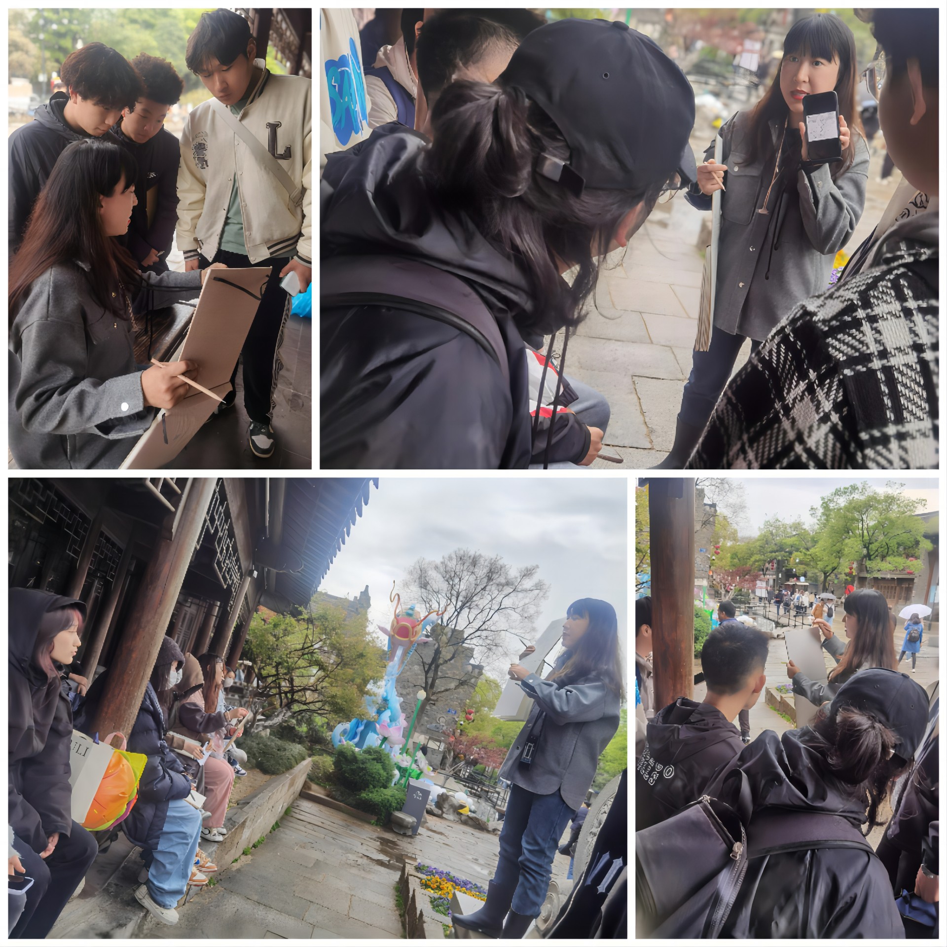 为了提高室学生的手绘水平,开阔专业视野,增强专业学习兴趣,践行美育教育,建筑室内设计专业224805班的学生在班主任李卉和专业老师徐嘉嘉的带领下,于2023年4月3日下午到老门东进行风景和建筑写生。