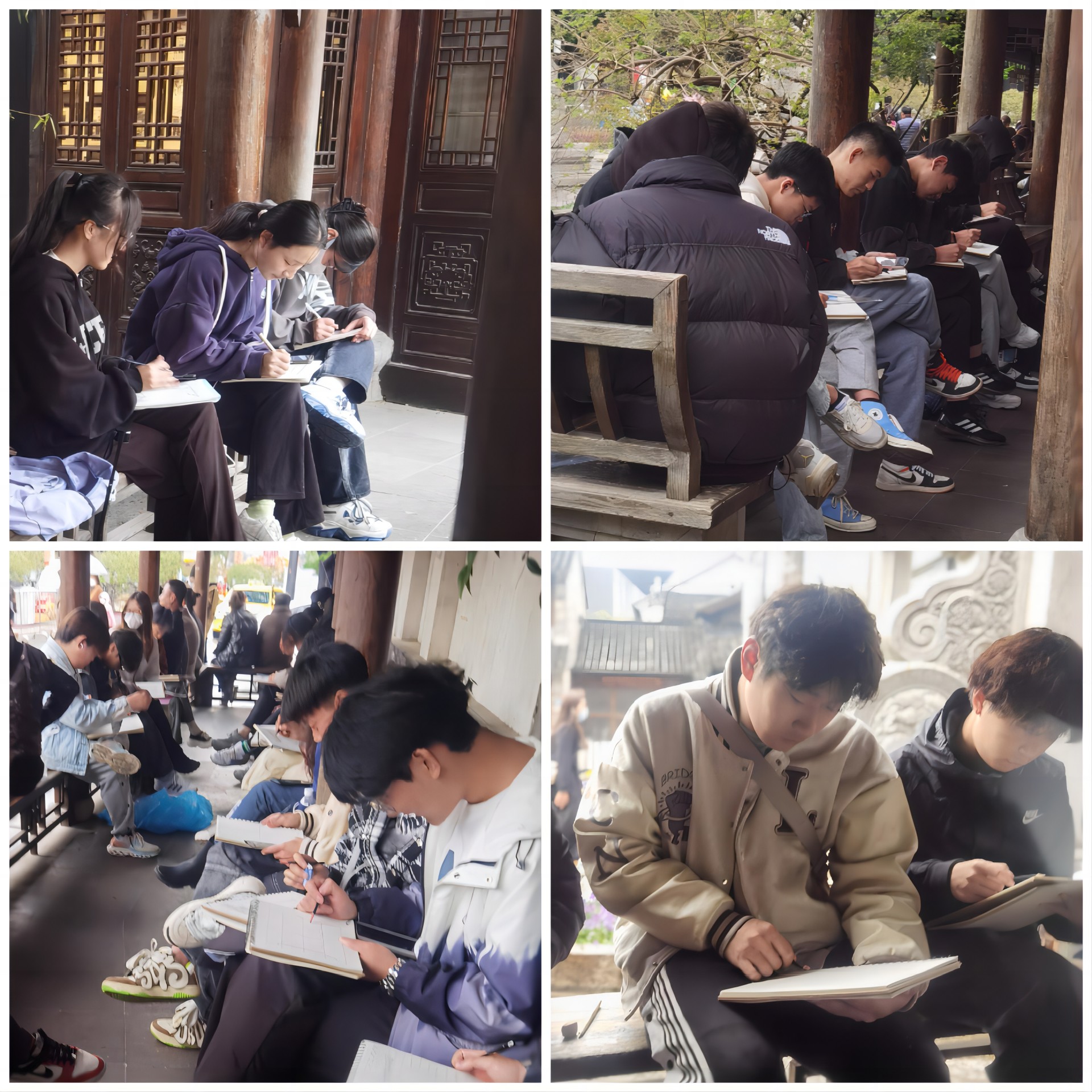 同学们通过画笔描绘、镜头捕捉、文字记录等艺术手法,记录下了这一幕幕难忘的场景。短短半天的时间里,学生们不仅完成了写生的任务,同时浸润在充满了厚重历史的老门东街区,也是一次感受南京历史文化的研学之旅。
