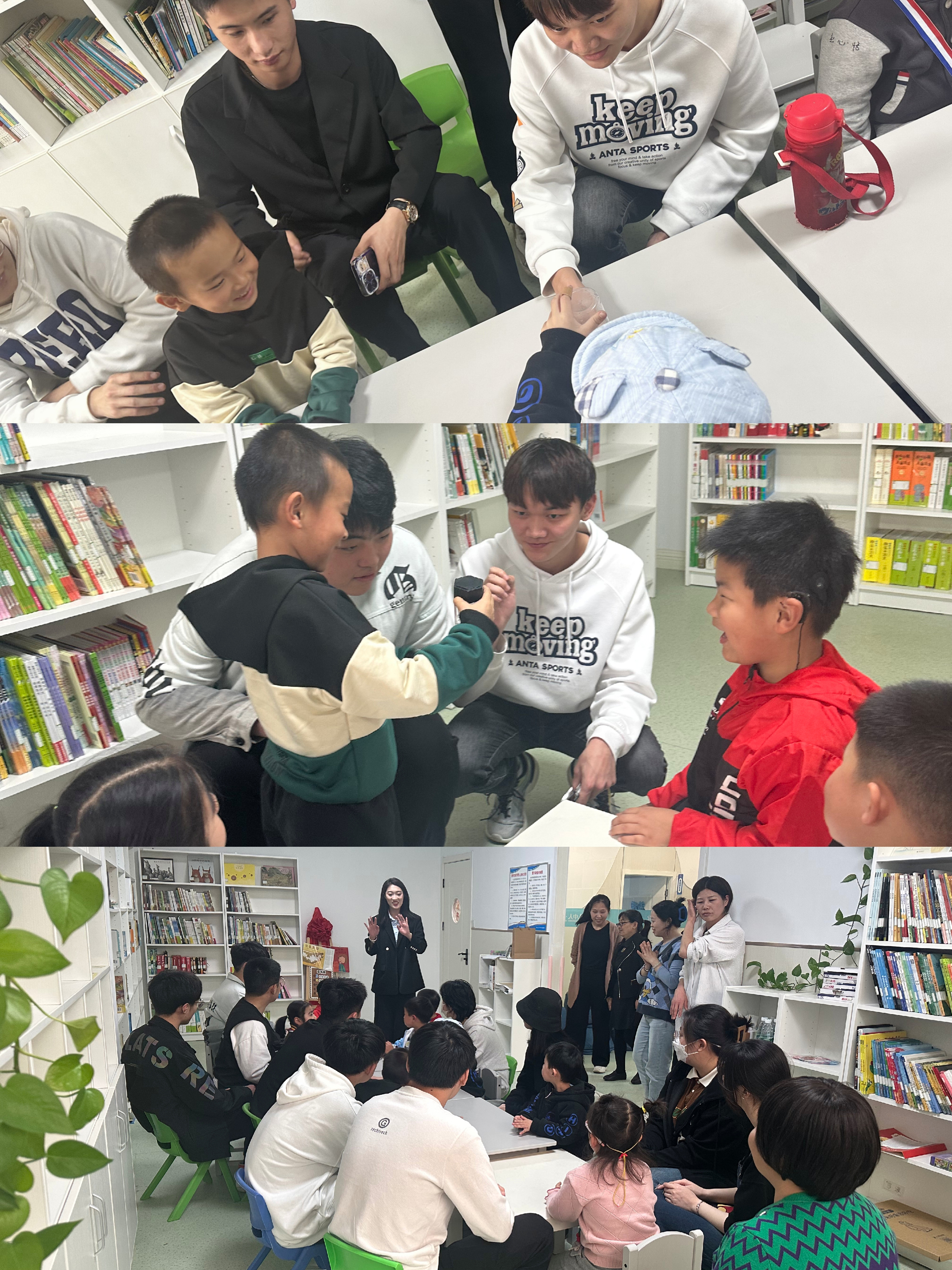 在活动室内,志愿者为大家带来精彩的魔术表演,孩子们纷纷凑上前来观察,并尝试表演魔术,在发现其中奥秘时所露出的笑容让所有人为之动容。在唱歌表演时,孩子们用心聆听,活泼的小朋友还和志愿者哥哥一起合唱了歌曲。站在表演台上的他们,大大方方,所散发出的光芒暖进里每个人的心窝。志愿者们陪他们聊天、读画本,做了一些简单的小游戏,最后志愿者们将精心准备的礼物送给孩子们,见到他们如此的开心,每位同学都很激动和欣慰!